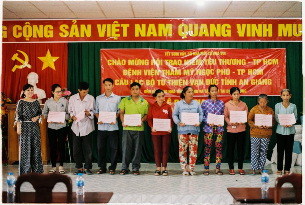 PSO - Sáng ngày 27/01/2019, CLB từ thiện Vạn Đức kết hợp với Hội Trao Niềm Yêu Thương và Bệnh viện thẩm mỹ Ngọc Phú tổ chức thăm hỏi và tặng 300 suất quà và 11 căn nhà cho hộ nghèo, người già neo đơn, trẻ mồ côi, người khuyết tật thuộc huyện Thoại Sơn, huyện Chợ Mới, TT.óc Eo và TP.Long Xuyên, An Giang, với tổng kinh phí hơn 300 triệu đồng.