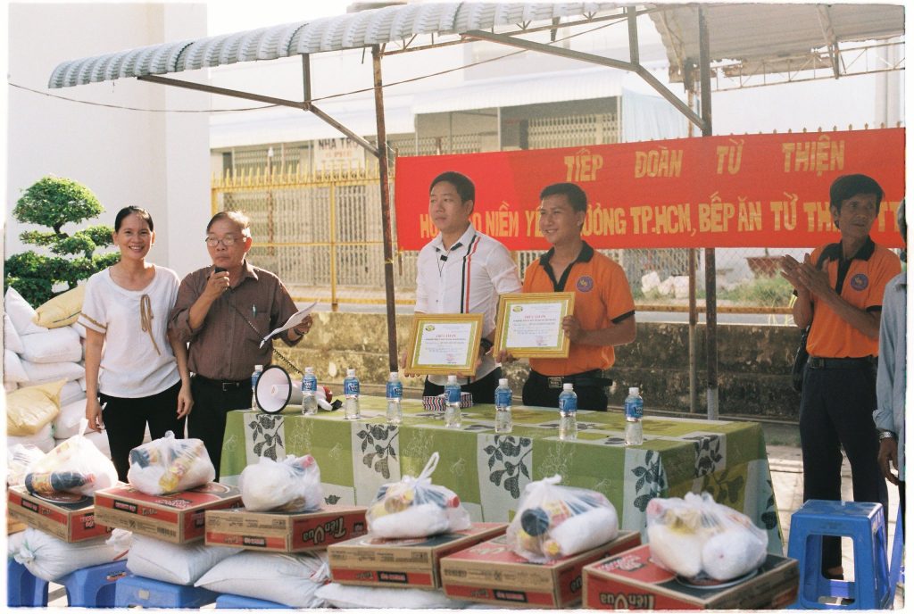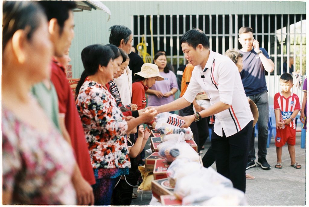 Tại đây, 300 suất quà được CLB và Mạnh thường quân trao tận tay cho bà con. Mỗi suất quà trị giá 300.000 VNĐ, bao gồm 1 phong bì tiền mặt 100 nghìn đồng và các nhu yếu phẩm như: dầu ăn, đường, nước tương, bột ngọt, trà và 10kg gạo).