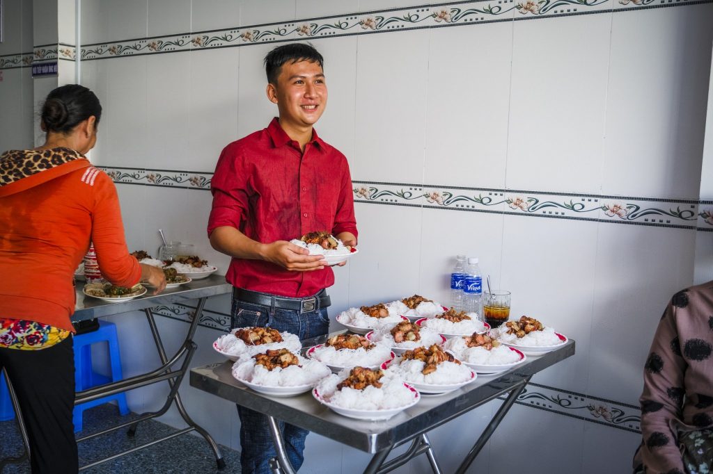 Anh Diệp Nhựt Trường ( Trưởng CLB Vạn Đức cũng là ban điều hành bếp ăn) cho biết, anh đến với công tác thiện nguyện từ rất sớm và đã gắn bó với các hoạt động Từ thiện nhiều năm nay. Noi gương gia đình vốn có truyền thống làm công tác thiện nguyện, anh đóng góp chút công sức tuổi trẻ vào những việc thiện, mong muốn được chia sẻ phần nào vất vả với người nghèo, người già, người neo đơn, người khó khăn trên địa bàn.