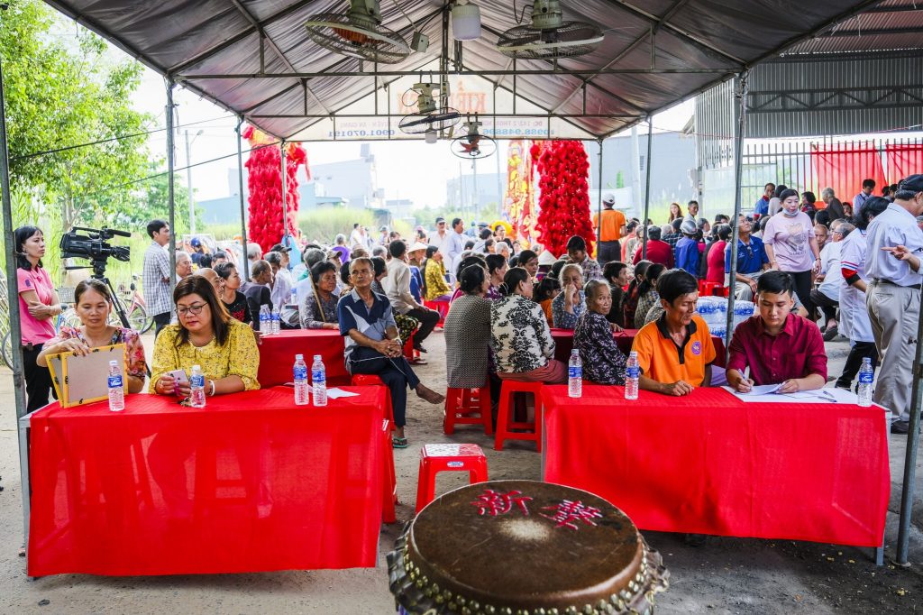 Tại buổi khai trương, nhiều tổ chức, cá nhân, nhà hảo tâm, Mạnh Thường Quân ủng hộ đóng góp kinh phí xây dựng nhà bếp, lương thực và một số dụng cụ nhà bếp. Cơ duyên làm Từ thiện để có thể tự tay mình làm ra món ăn chay tinh khiết, thơm ngon, bổ dưỡng, đem lạnh sức khỏe cho bà con, đây là tâm nguyện của CLB Vạn Đức.