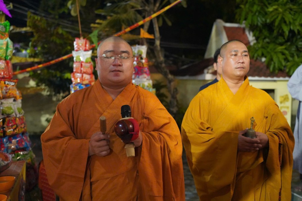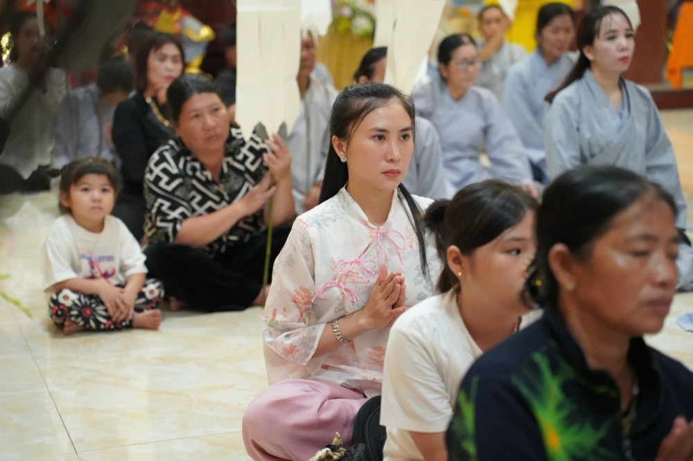 Đặc biệt, vào lúc 19h00 ngày 14/8 ÂL, chùa Bửu Khánh đã long trọng cử hành lễ thắp nến khai thị cho chư hương linh, chư linh thai sản nạn. Trong không gian thiền môn tĩnh lặng, từng ngọn nến được thắp sáng, tượng trưng cho ánh sáng trí tuệ và từ bi của chư Phật, soi rọi đến cảnh giới u minh, dẫn dắt chư Hương linh và Thai nhi sản nạn lìa mê về giác, nương nhờ ánh sáng Phật pháp để sớm được siêu thoát.
