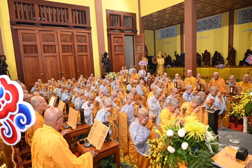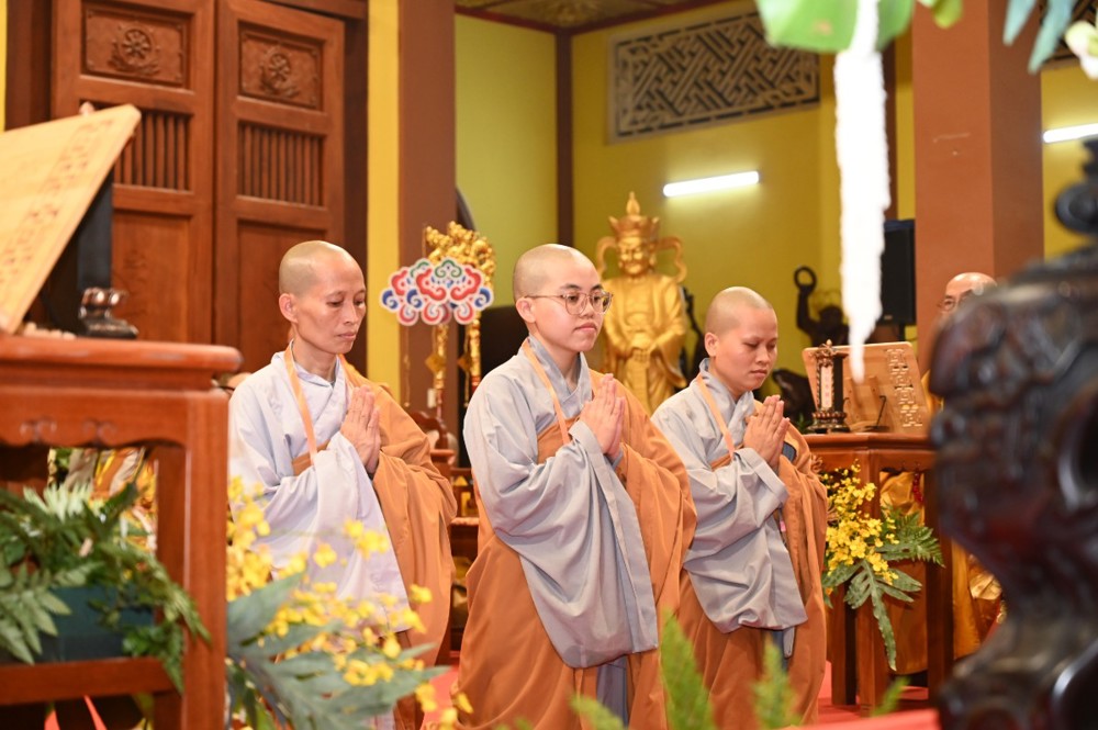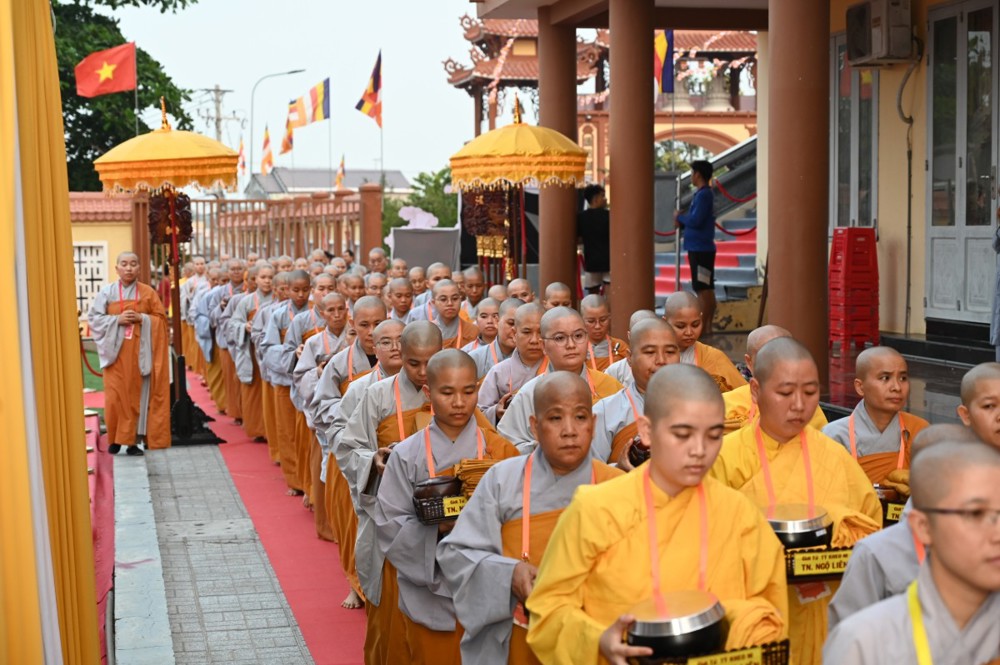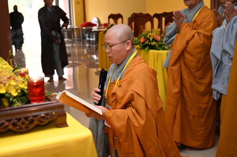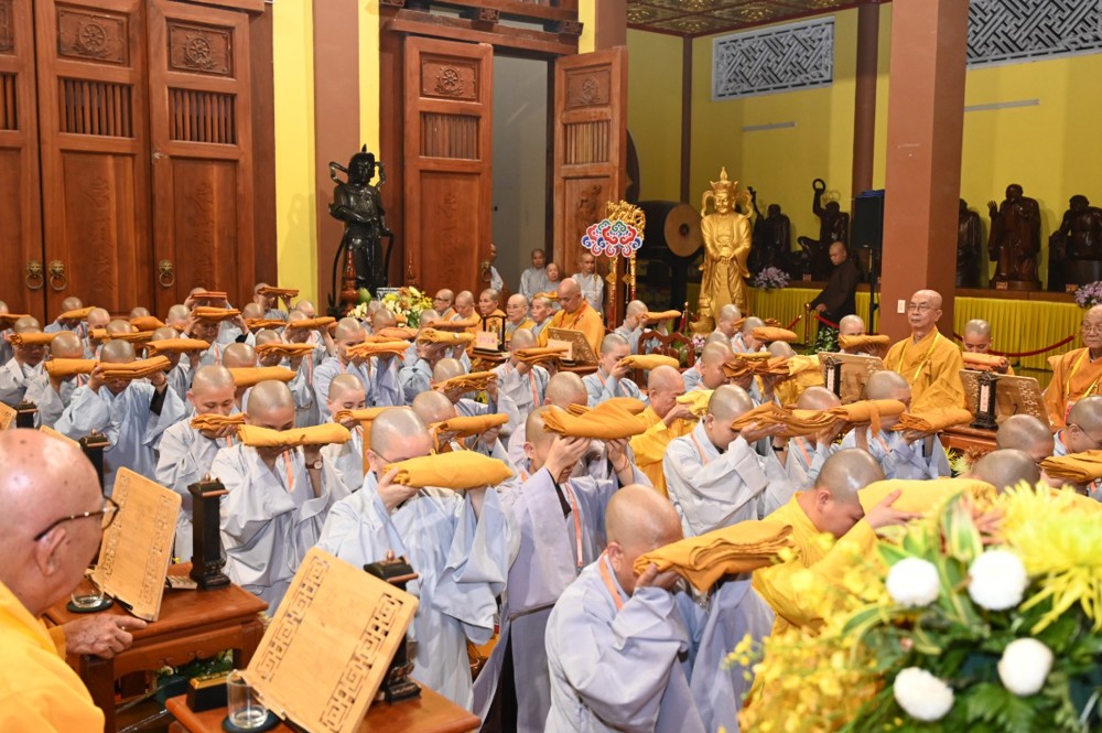 Tại Giới trường Tăng, Ni sư Thích Nữ Như Liên – Điển lễ Ni, thay mặt Hội đồng Thập sư Ni trang nghiêm đảnh lễ và ba lần tác bạch, chí thành thỉnh cầu cho 71 giới tử Ni được nhập Giới trường Tăng, lãnh thọ Chánh pháp từ Đại Tăng.