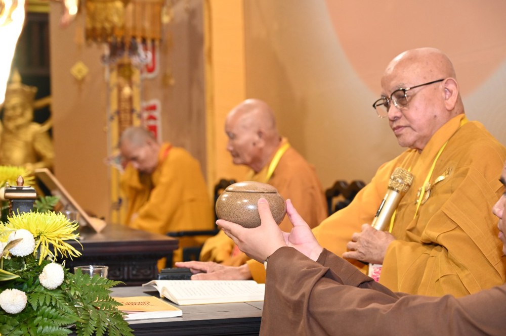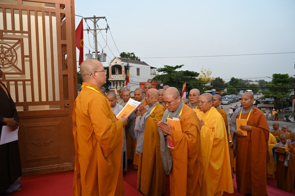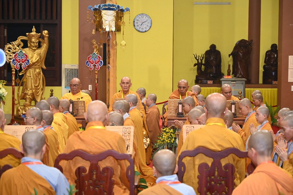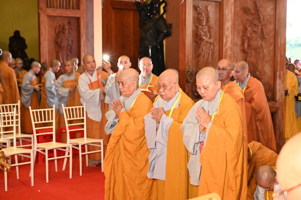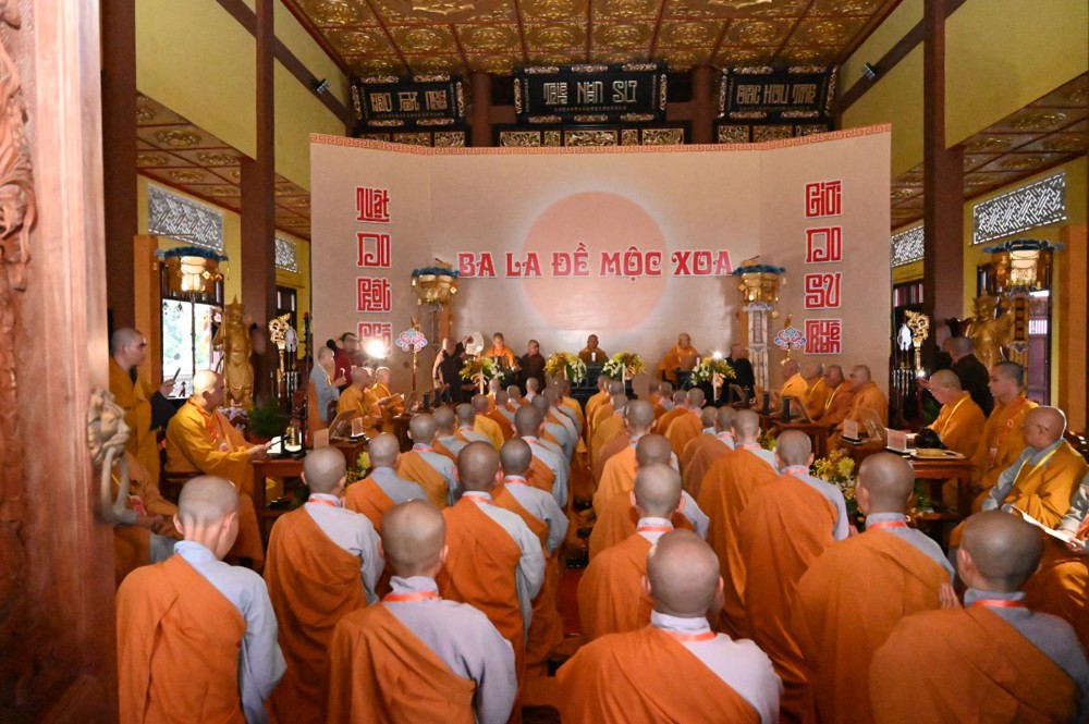 Trước tâm thành tha thiết và chí nguyện cầu giới kiên định của chư Ni, Trưởng lão Hòa thượng Thích Minh Thông – Phó Thư ký Hội đồng Chứng minh, Tuyên Luật sư – đã từ bi tùy thuận hứa khả. Ngài quang lâm Giới trường, chính thức tác pháp Yết-ma, truyền trao Chánh pháp cho các giới tử Ni đúng theo nghi thức luật định của giới đàn.