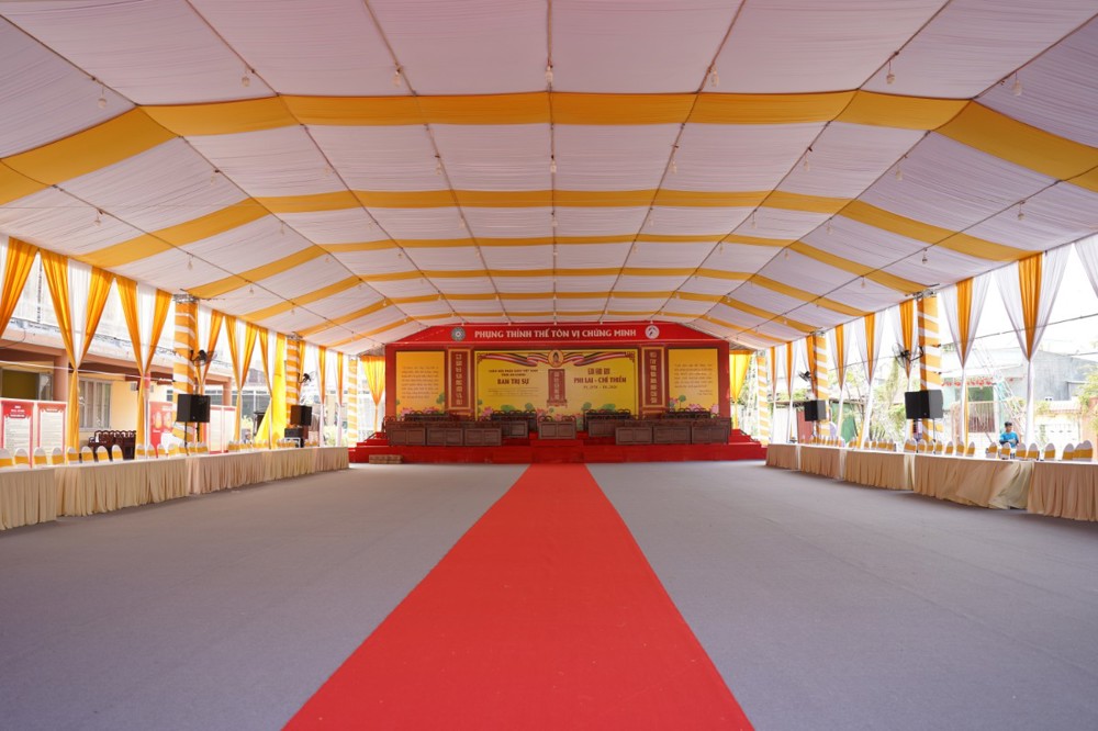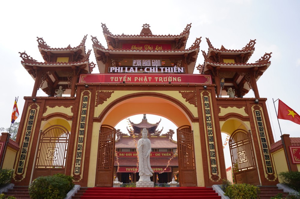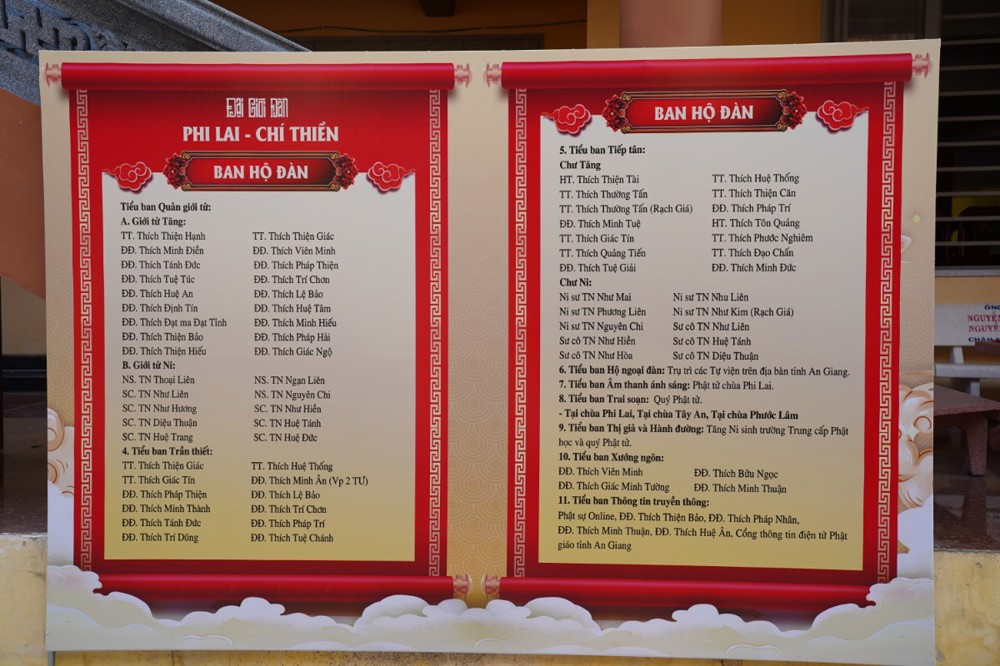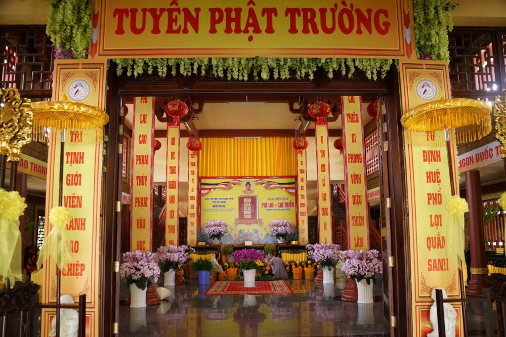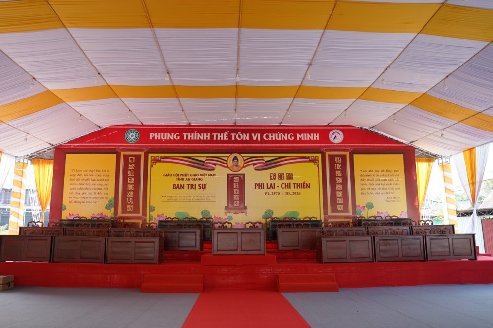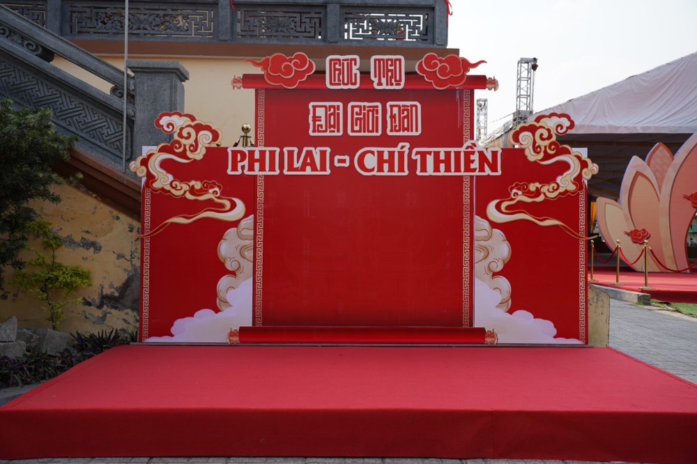 Tại Tổ đình Phi Lai (phường Chi Lăng, tỉnh An Giang) – địa điểm chính diễn ra Đại Giới đàn, các khâu trang trí như cổng chùa, lễ trường khai mạc, khu vực khảo hạch giới tử đã được hoàn thiện. Cờ hoa, băng rôn được trang hoàng trang nghiêm, tạo không khí thanh tịnh, sẵn sàng đón chào giới tử thập phương.