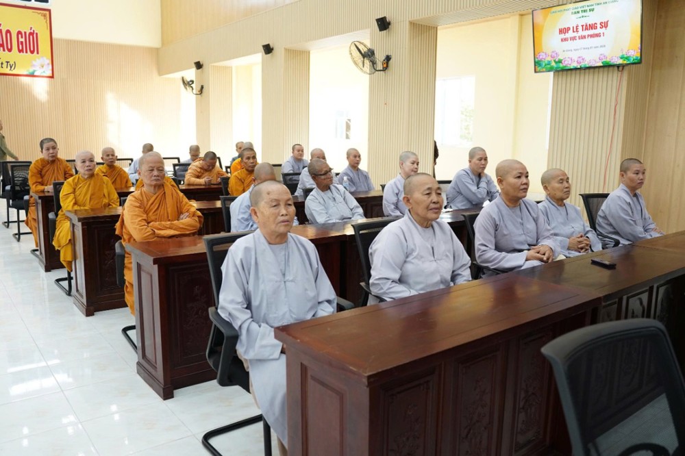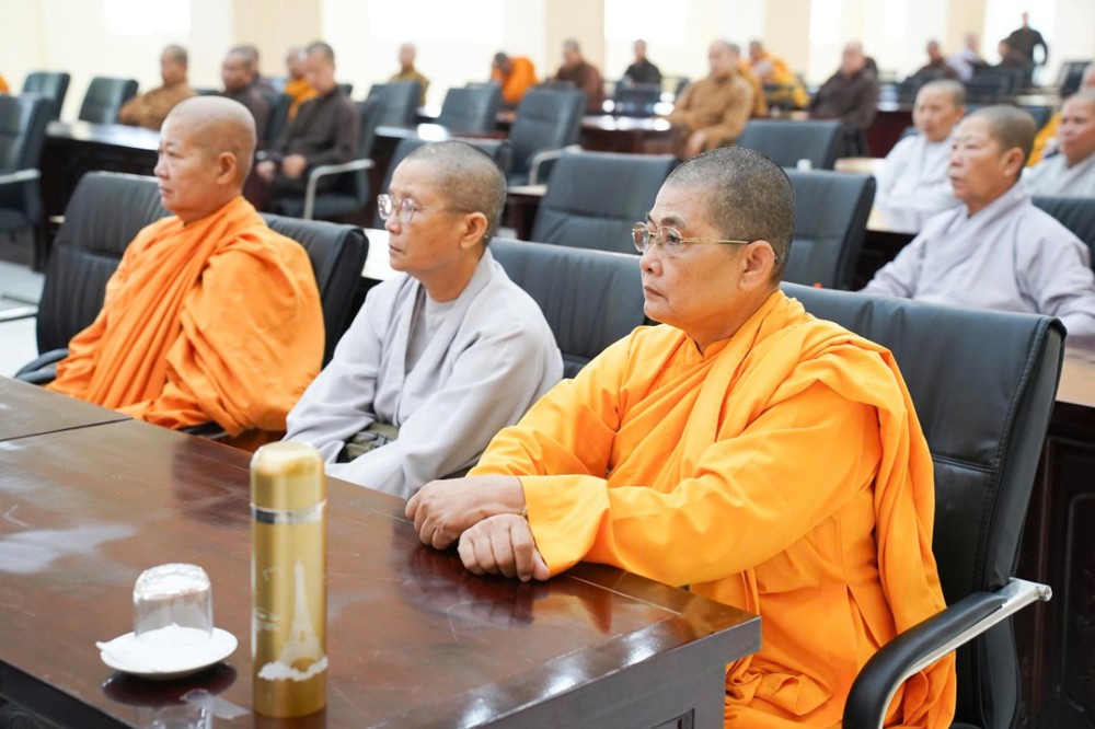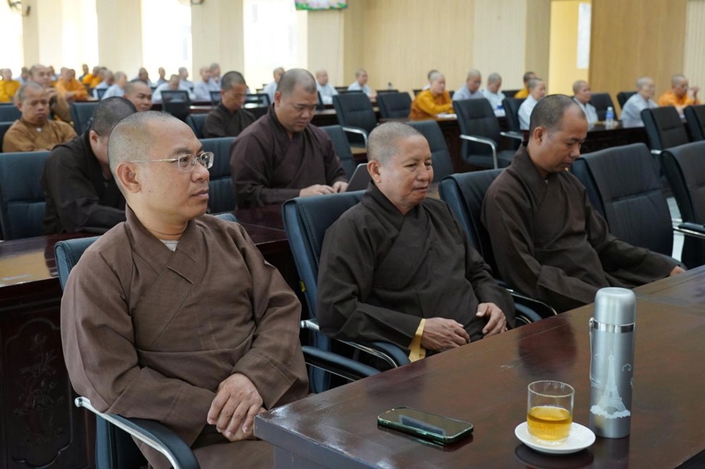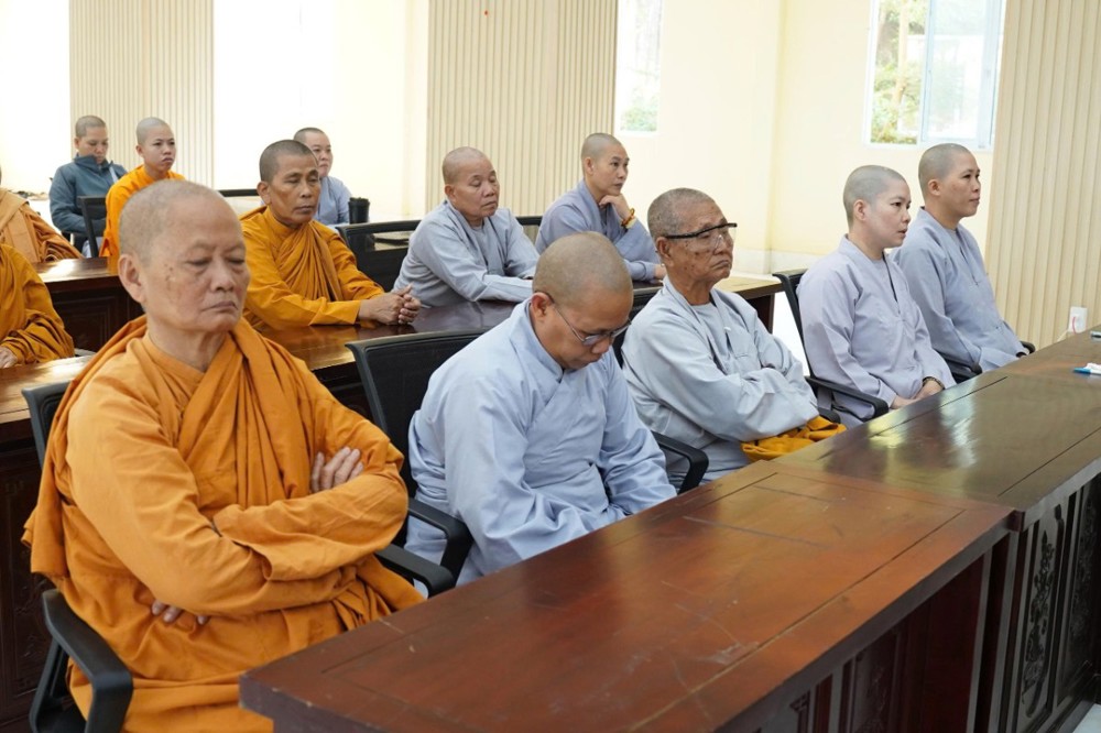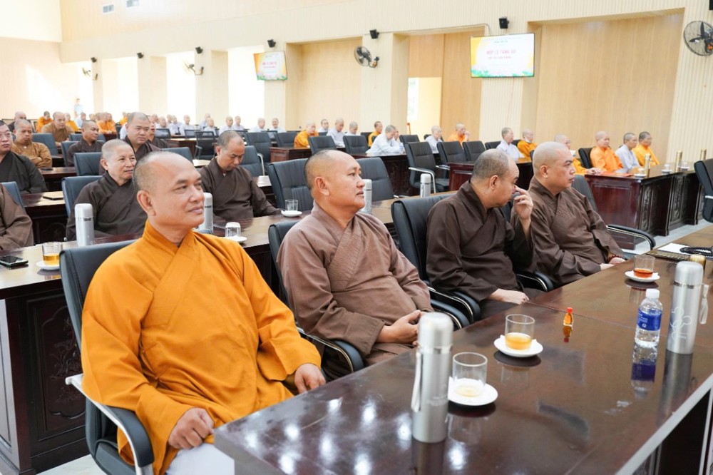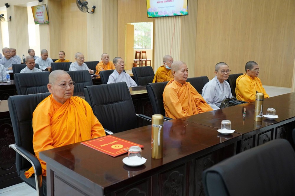 Tham dự phiên họp còn có chư Tôn đức Tăng Ni Ban Thư ký, Văn phòng BTS tỉnh và chư Tôn đức Tăng Ni trụ trì các tự viện thuộc khu vực Văn phòng 1.