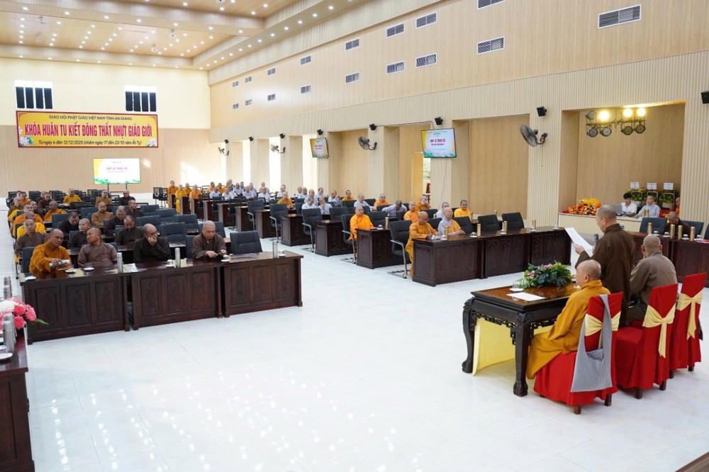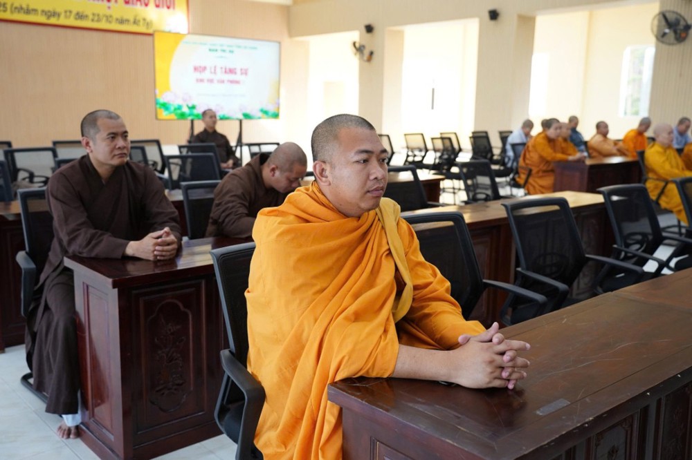 Tại phiên họp, Đại đức Thích Minh Thuận – Cán bộ Văn phòng 2 Trung ương, Phó Thư ký BTS GHPGVN tỉnh An Giang đã công bố các Quyết định tấn phong giáo phẩm đến chư Tôn đức, gồm: Thượng tọa 02 vị; Ni trưởng 02 vị; Ni sư 04 vị.