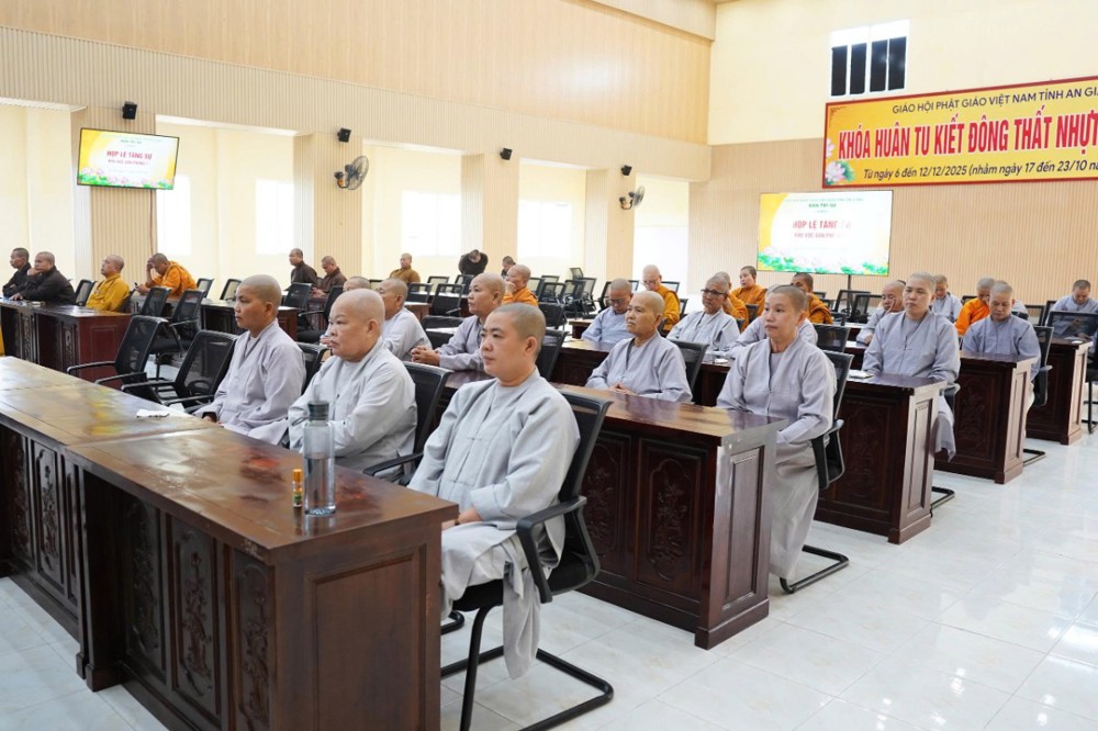 PSO - Ngày 27/01/2026 (nhằm ngày mùng 9 tháng Chạp năm Ất Tỵ), tại chùa Phật Quang Phổ Chiếu (phường Vĩnh Thông, tỉnh An Giang), Ban Trị sự GHPGVN tỉnh An Giang đã tổ chức phiên họp lệ Tăng sự khu vực Văn phòng 1, nhằm triển khai các công tác Phật sự trọng tâm trong thời gian tới và trao quyết định tấn phong giáo phẩm đến chư Tôn đức Tăng, Ni.
