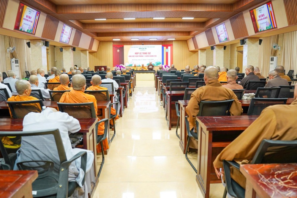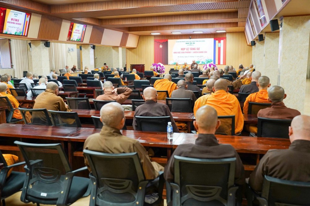 Chủ trì phiên họp có: TT. Thích Minh Nhẫn – Ủy viên Thư ký HĐTS, Phó Chánh Văn phòng 2 Trung ương, Phó Trưởng ban Thường trực BTS GHPGVN tỉnh An Giang; TT. Thích Phước Thắng, TT. Thích Huệ Tâm – đồng Phó BTS GHPGVN tỉnh; cùng sự tham dự của chư Tôn đức Tăng Ni Ban Thư ký, Văn phòng BTS và chư Tôn đức Tăng Ni trụ trì khu vực Kiên Giang cũ.