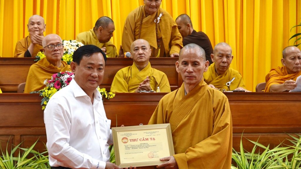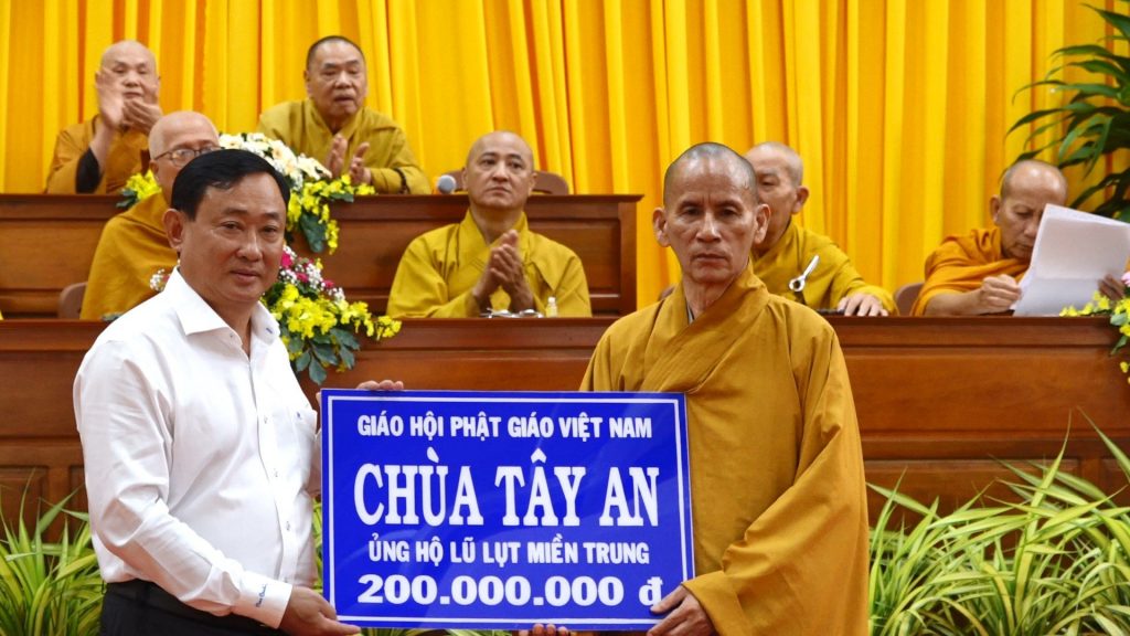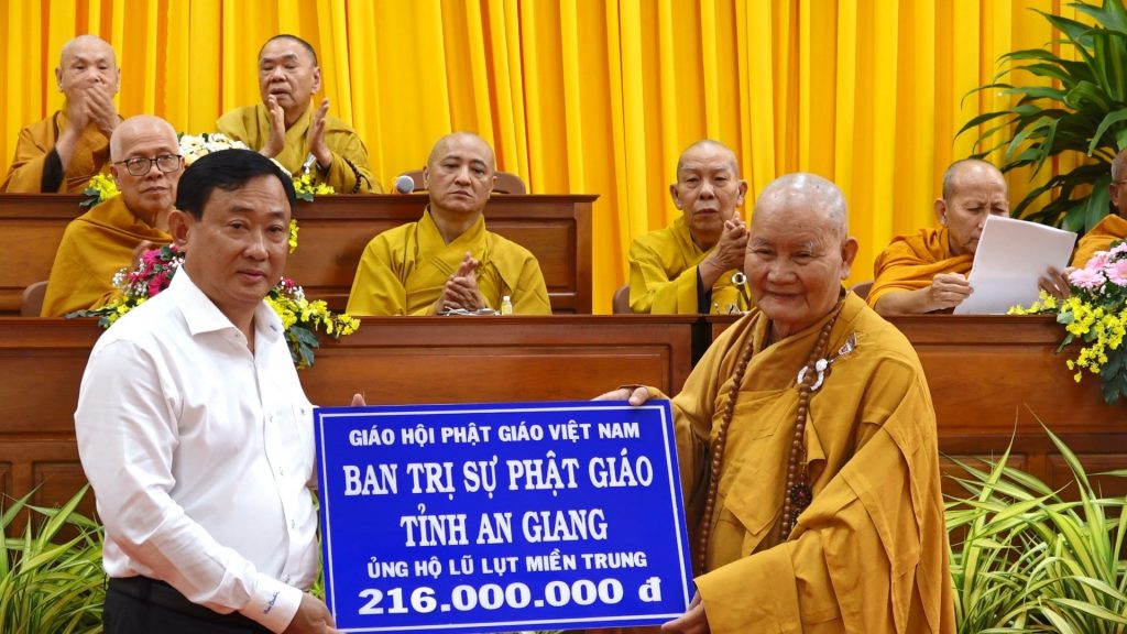 Dịp này, BTS GHPGVN tỉnh An Giang, chùa Tây An (P.Núi Sam, TP. Châu Đốc) cũng trao bảng tượng trưng cho UBMTTQ Việt Nam tỉnh, ủng hộ đồng bào miền Trung bị thiên tai bão lũ với tổng số tiền là 416 triệu đồng.