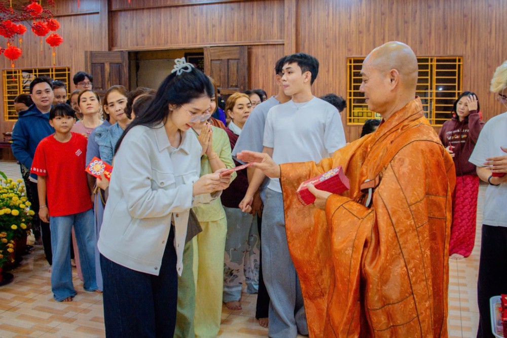 Sau khóa lễ tụng kinh, Thượng tọa Trụ trì đã gửi lời chúc mừng năm mới đến toàn thể quý Phật tử, ân cần sách tấn tinh tấn tu học, giữ gìn chánh niệm giữa đời thường. Những phong bao lộc xuân được trao tận tay như gửi gắm niềm tin, hy vọng và phúc lành đầu năm mới.