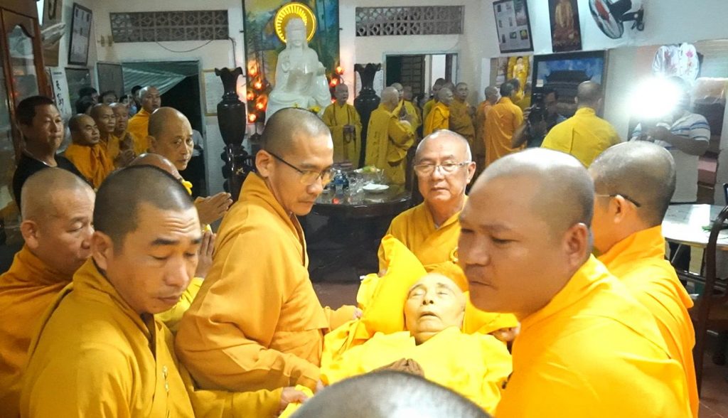 Vào lúc 19 giờ ngày 22/9/2020 (nhằm mùng 6 tháng 8 năm Canh Tý) tại chùa Liên Đài (thị trấn Núi Sập, tỉnh An Giang), chư Tôn đức BTS GHPGVN tỉnh An Giang, GHPGVN huyện Thoại Sơn cùng môn đồ pháp quyến cử hành nghi lễ nhập kim quan cố Hòa Thượng.