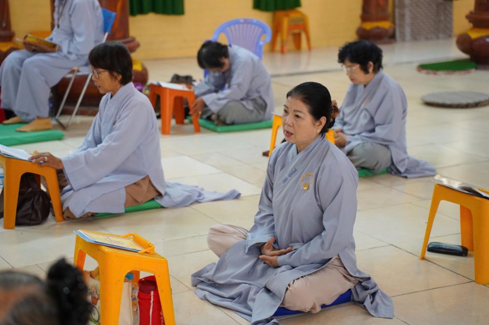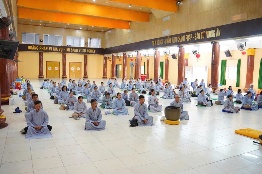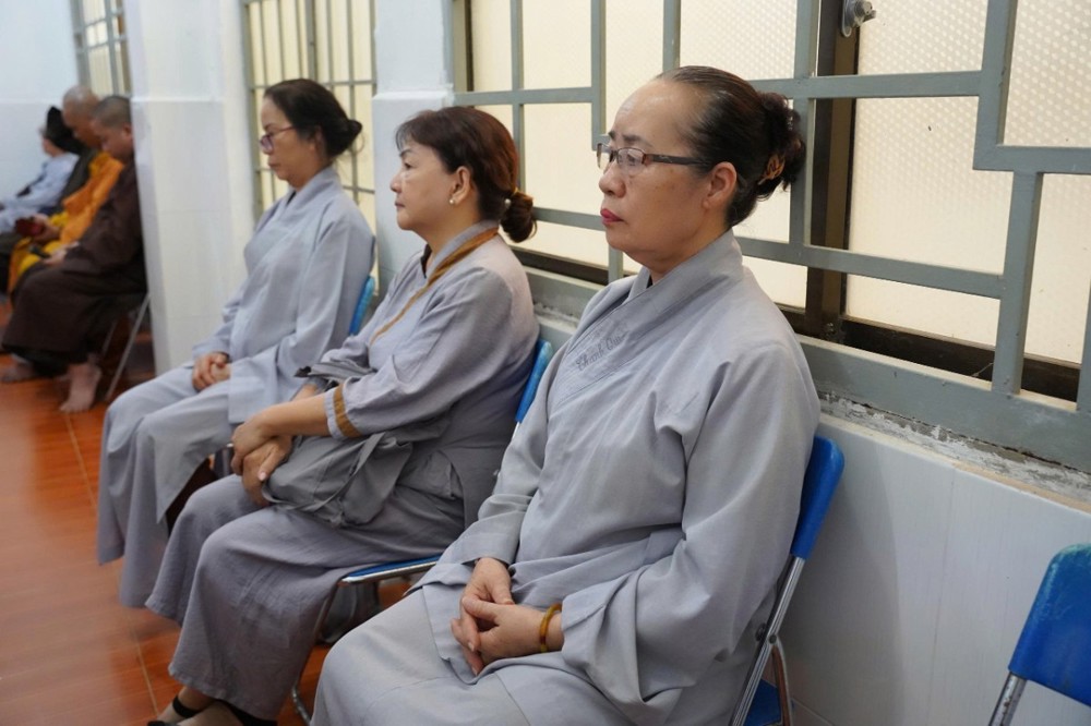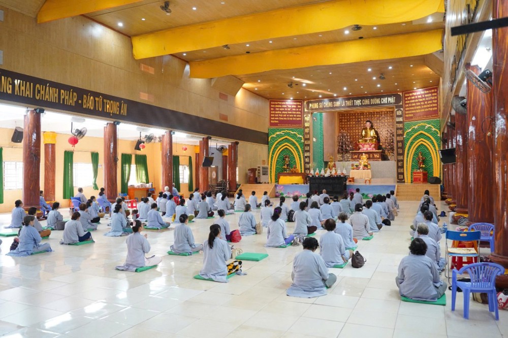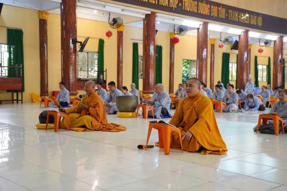 Trong không khí thanh tịnh, đại chúng đồng tụng Kinh Sám Hối, Kinh Phổ Môn và lạy Phật hồng danh. Tiếng chuông mõ hòa cùng lời kinh trầm hùng đã góp phần tạo nên không gian tu tập sâu lắng, giúp người hành trì buông xả phiền não, nuôi dưỡng niềm tin nơi Tam bảo.