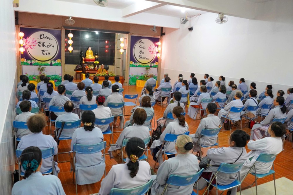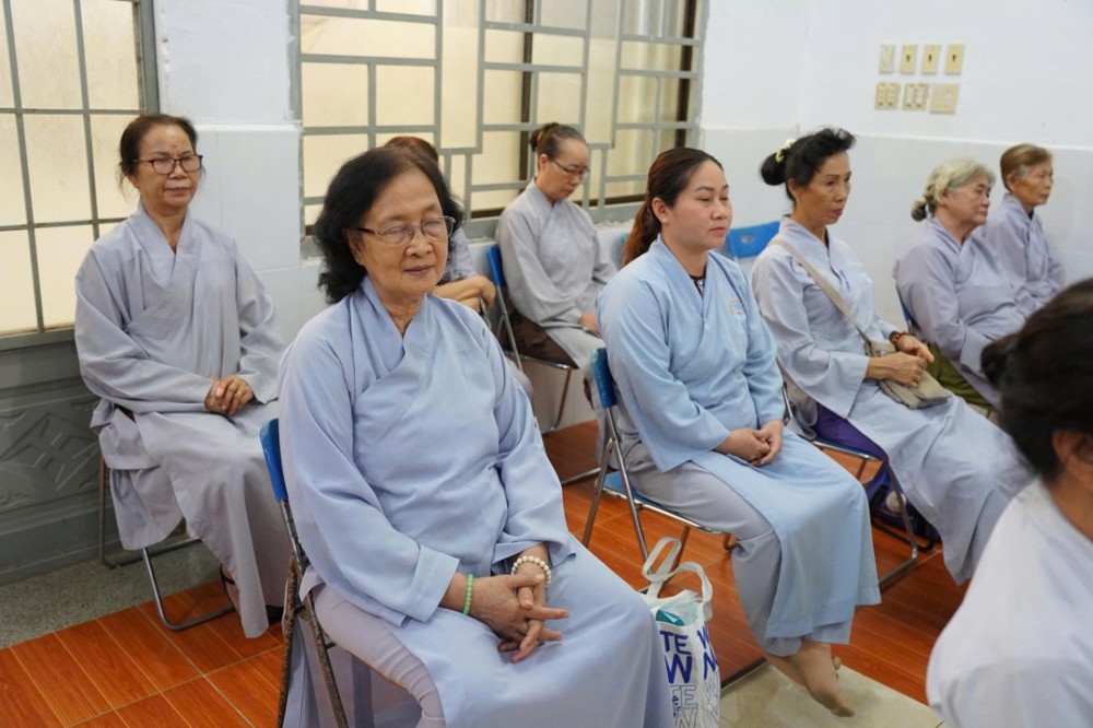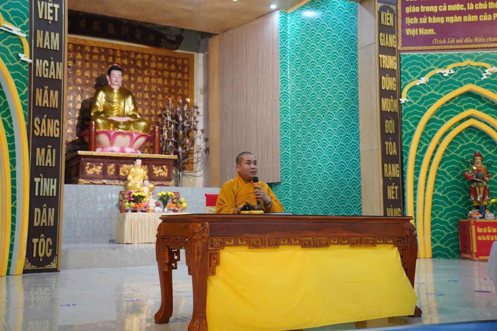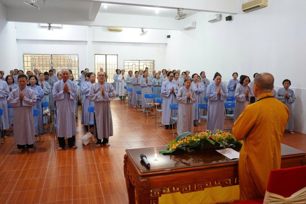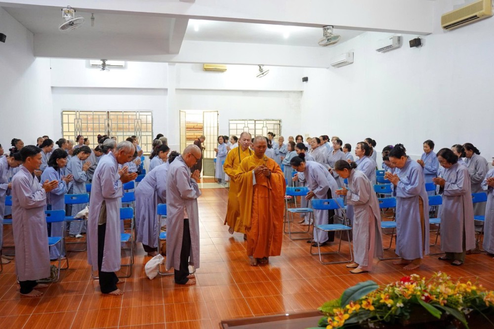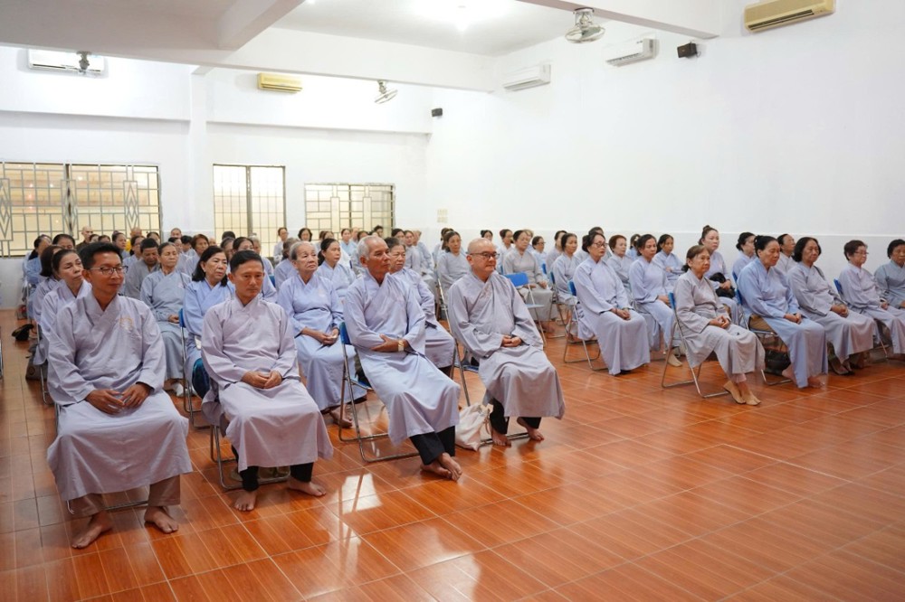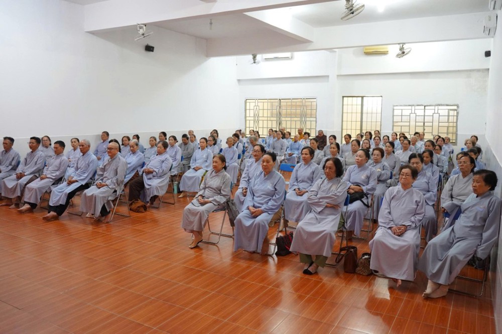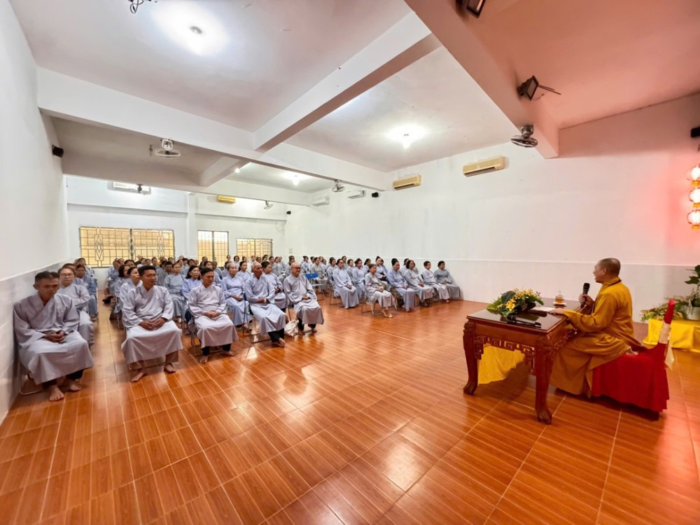 Buổi chiều, đạo tràng cung đón Thượng tọa Thích Minh Nhẫn - Ủy viên Thư ký Hội đồng Trị sự, Phó Văn phòng 2 Trung ương Giáo hội, Phó trưởng ban Thường trực Ban Trị sự GHPGVN tỉnh An Giang, Trụ trì chùa Phật Quang quang lâm thuyết giảng, mang đến cho đại chúng một thời pháp đầy tuệ giác và từ bi.
