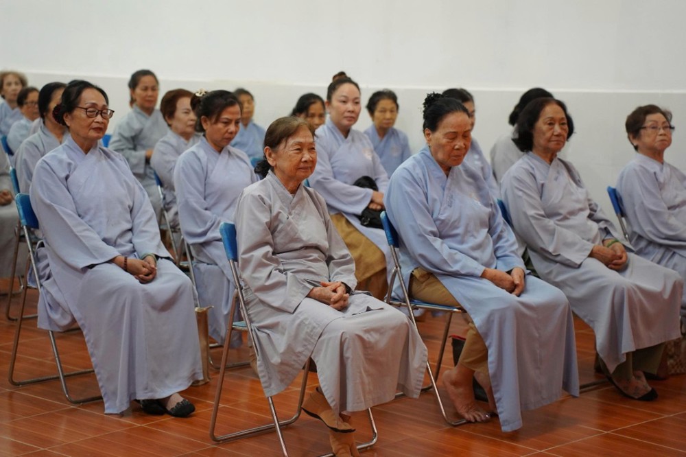 Tiếp đó, chư Tôn đức trang nghiêm truyền trao giới pháp Bát Quan Trai. Qua lời khai thị, đại chúng được nhắc nhở về ý nghĩa thọ trì tám giới như nền tảng đạo đức và phương tiện thiết thực giúp chuyển hóa thân tâm, hướng đến đời sống an lạc và tiến tu trên con đường giải thoát.