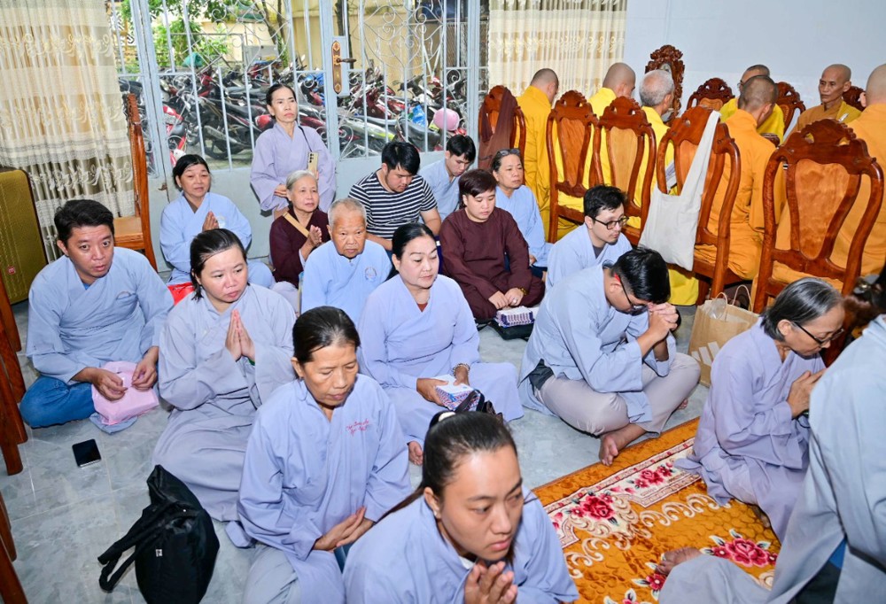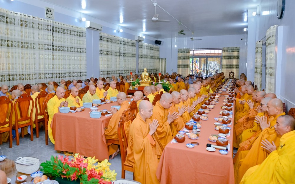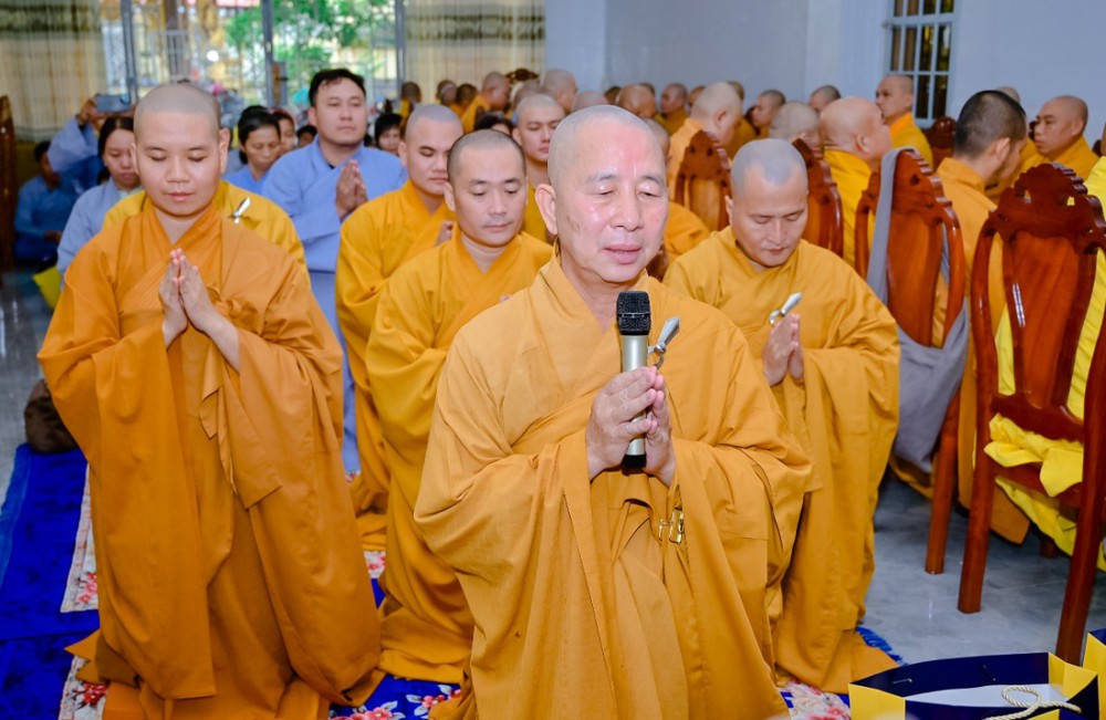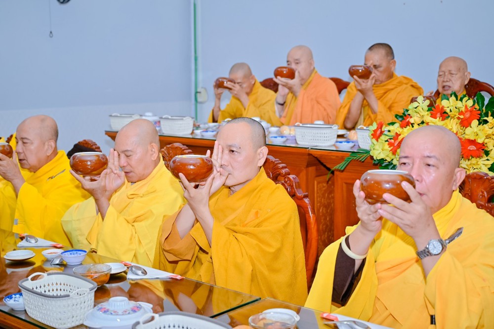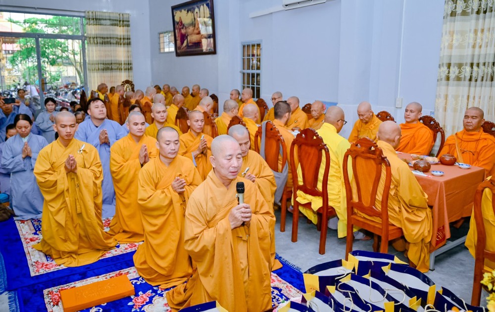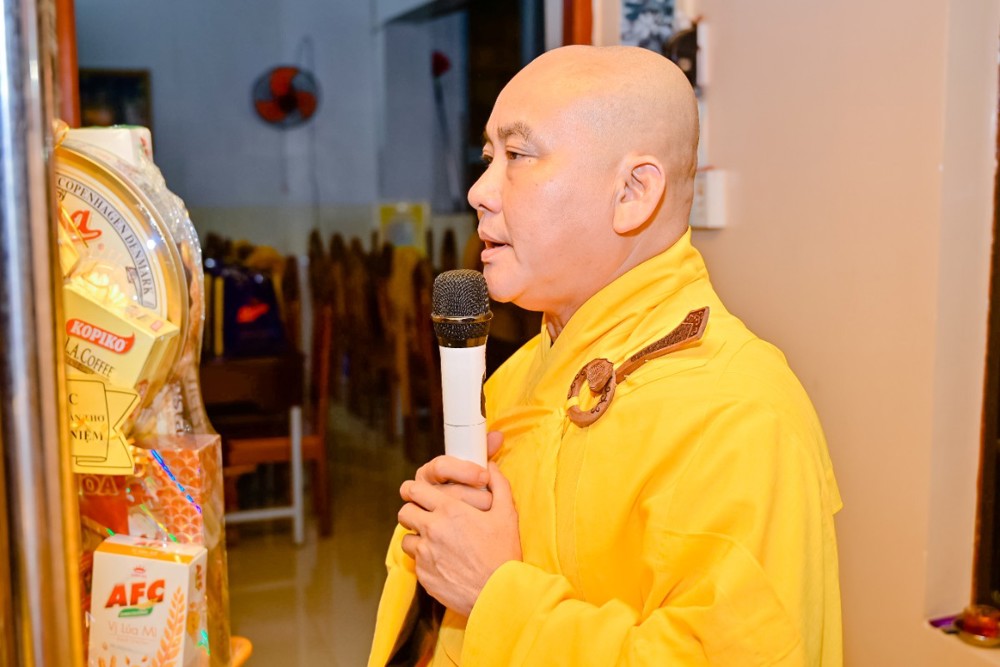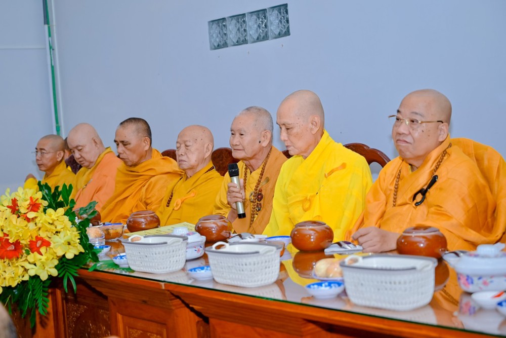 Tiếp đó, cung đối trước chư Tôn đức chứng minh, Thượng tọa Thích Chơn Nghĩa, Trụ trì Tịnh thất Trúc Lâm, thay mặt môn đồ hiếu quyến dâng lời tác bạch cúng dường trai tăng, bày tỏ lòng tri ân sâu sắc đối với chư Tôn thiền đức đã quang lâm chứng minh và hộ trì cho buổi lễ.
