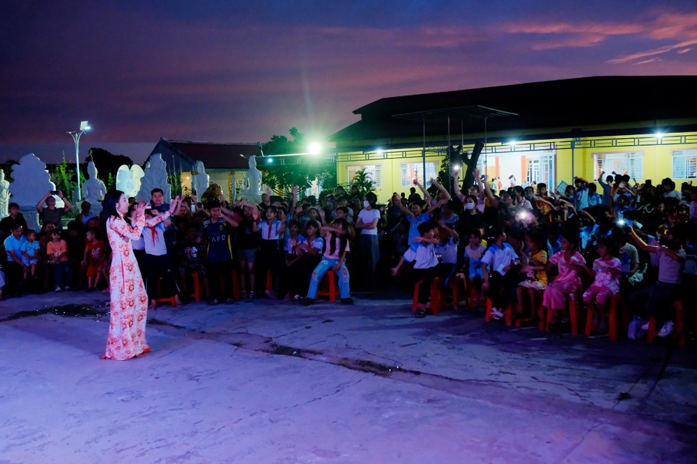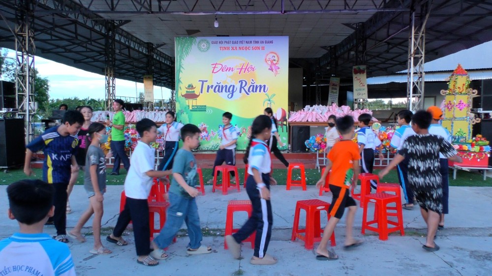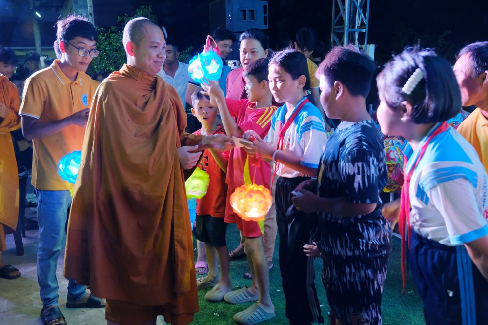 Đêm hội không chỉ mang lại niềm vui, tiếng cười cho các em thiếu nhi mà còn là dịp để lan tỏa tình thương, tinh thần sẻ chia trong cộng đồng, giúp các em cảm nhận được sự quan tâm, yêu thương từ nhà chùa và xã hội.