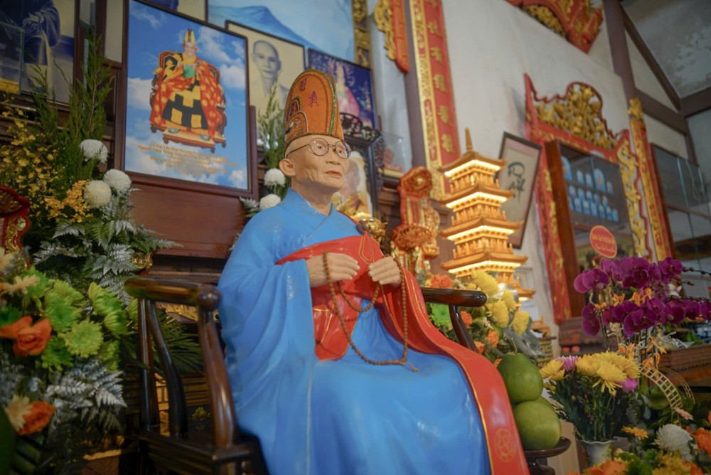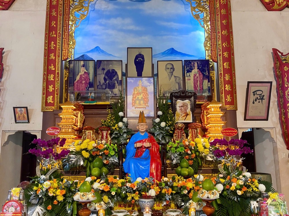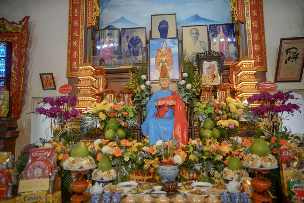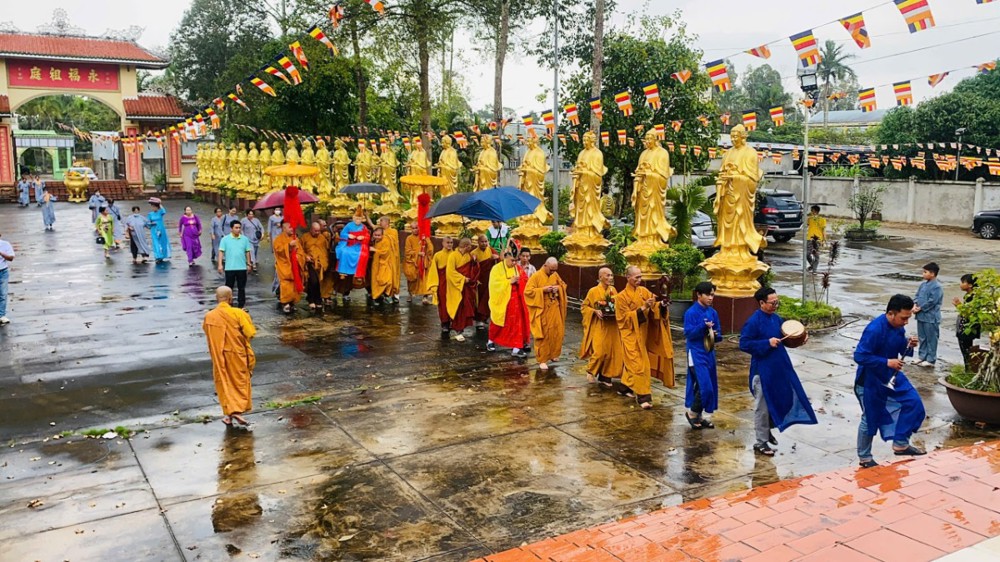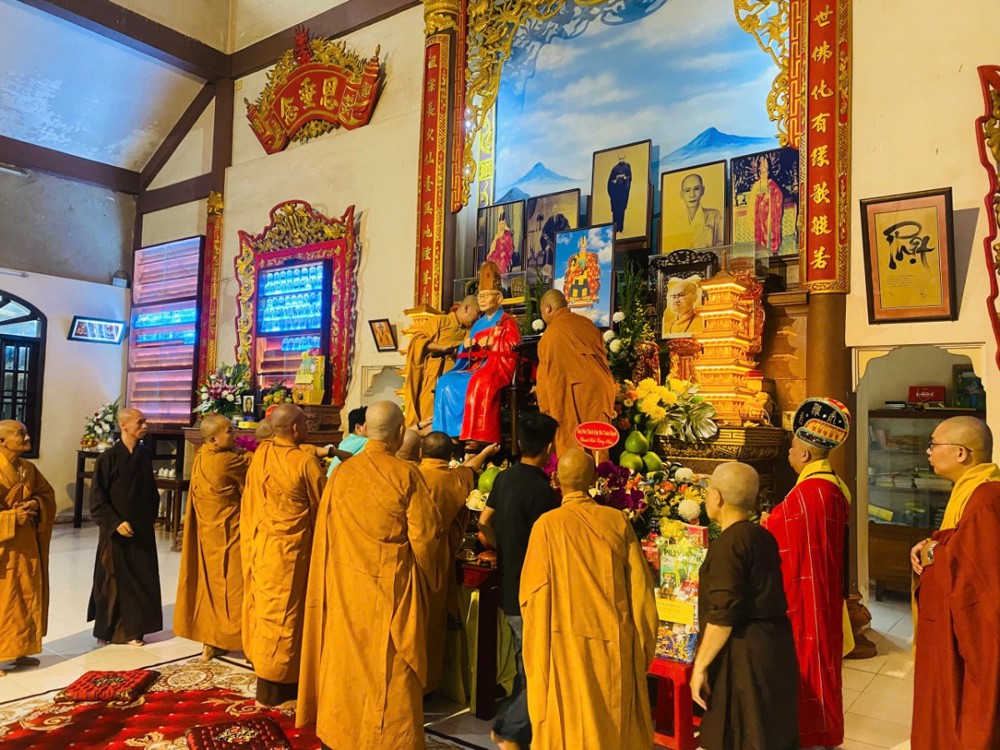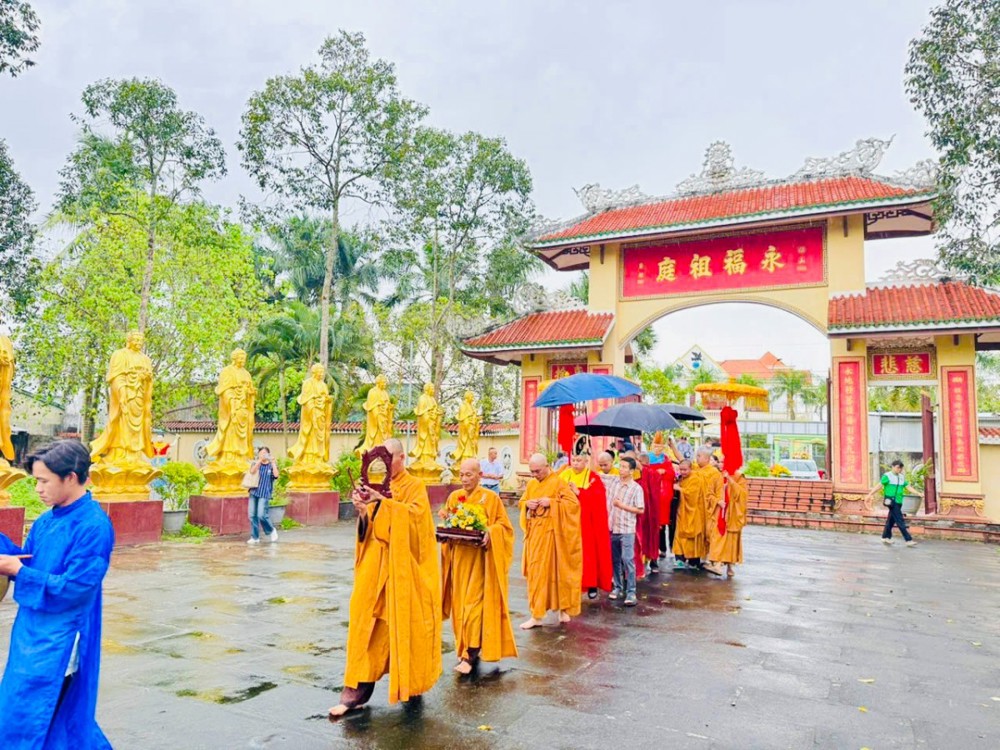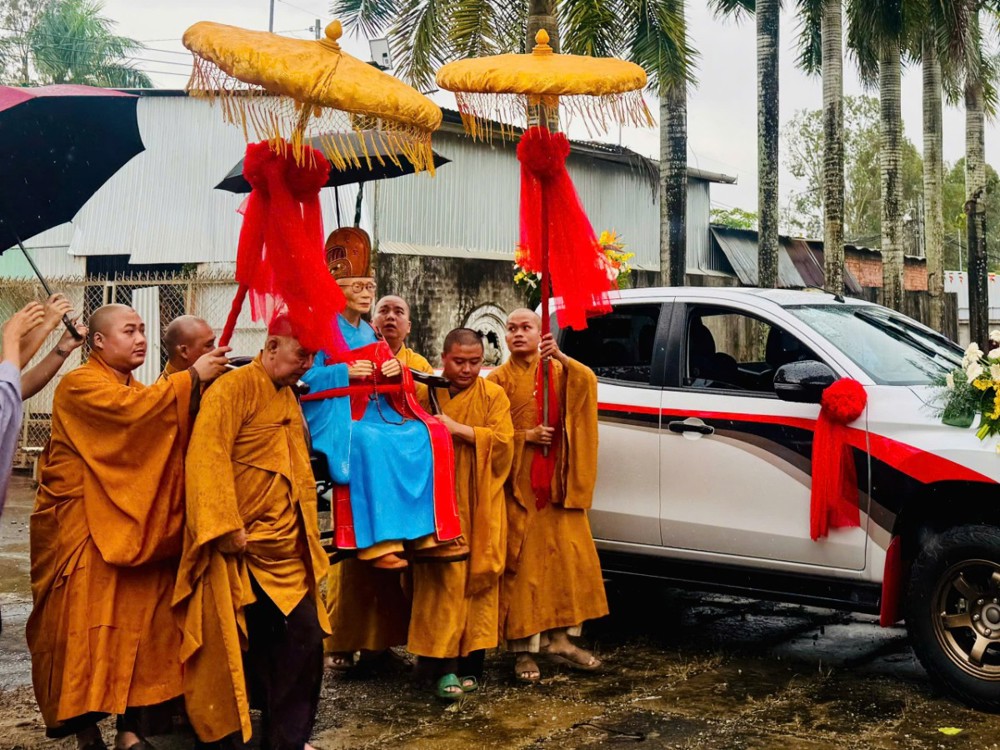 Trước đó, ngày 19/11/2025, chư Tôn đức môn đồ đệ tử đã cung nghinh tôn tượng cố Trưởng lão Hoà thượng từ Điểm sinh hoạt tôn giáo tập trung Chơn Hiển - xã Vĩnh Bình trở về chùa Vĩnh Phước và tôn trí Tổ đường.