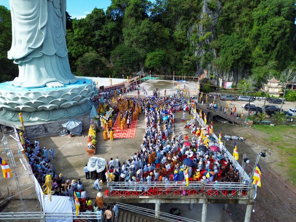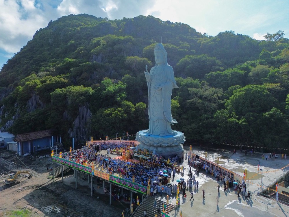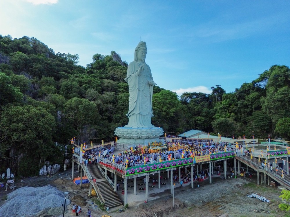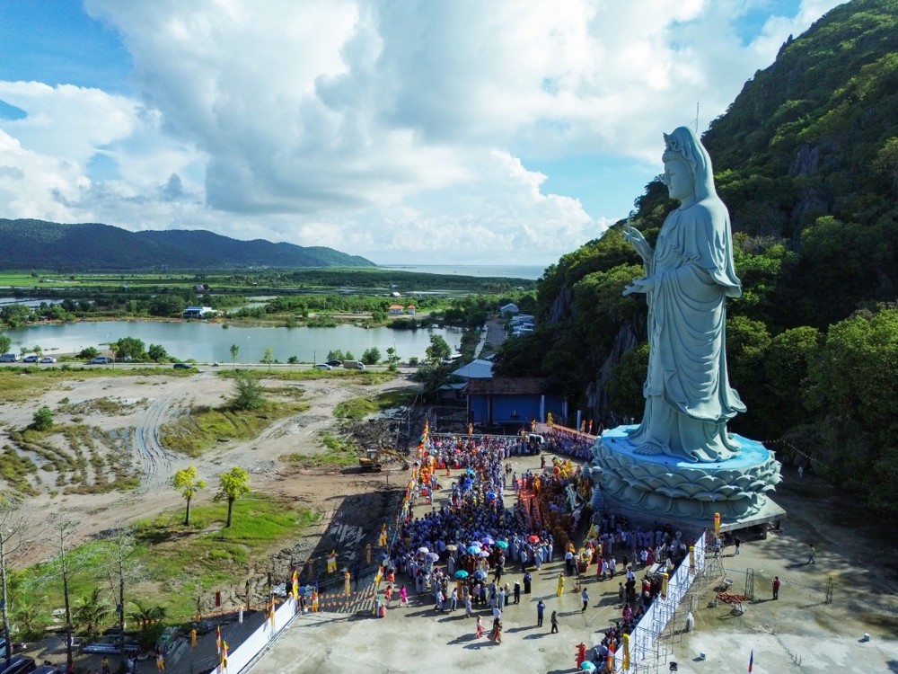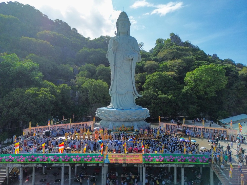 Tôn tượng Quán Thế Âm Bồ-tát cao 33 mét được khởi công vào ngày 19/2 âm lịch năm Quý Mão, sau hơn hai năm kiến tạo và xây dựng nay đã hoàn thành phần tôn tượng. Trong không khí thiêng liêng của ngày vía Đức Quán Thế Âm, buổi lễ Yểm tâm - Hô thần nhập tượng được Hòa thượng Thích Huệ Thông chủ trì với các nghi thức tâm linh Phật giáo truyền thống: cung thỉnh chư Tôn đức tác pháp an vị, tụng kinh chú nguyện, trì chú Đại bi, niêm hương bạch Phật và thực hiện nghi thức nhập linh khí cho tôn tượng.
