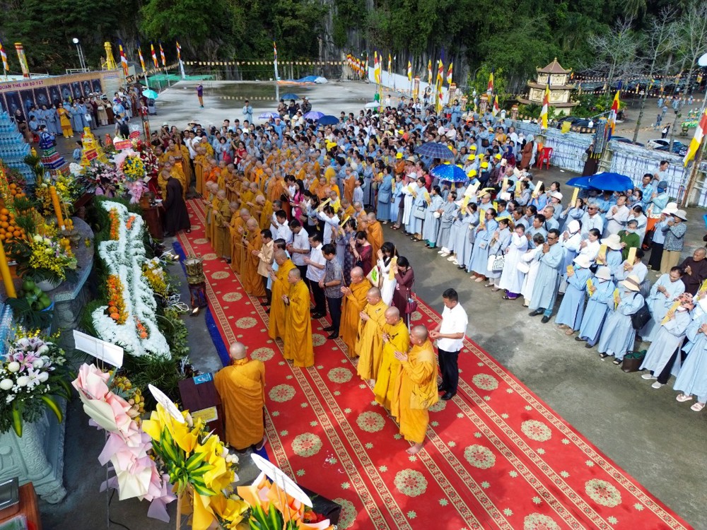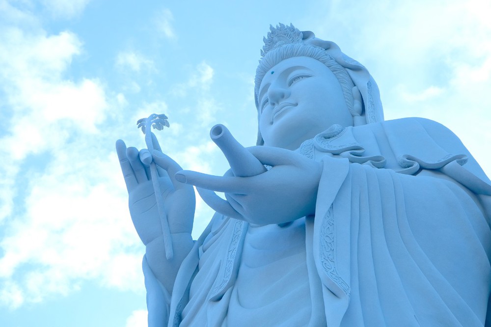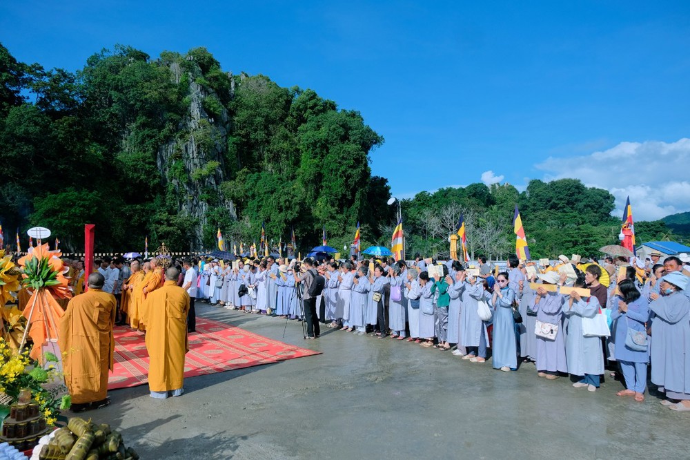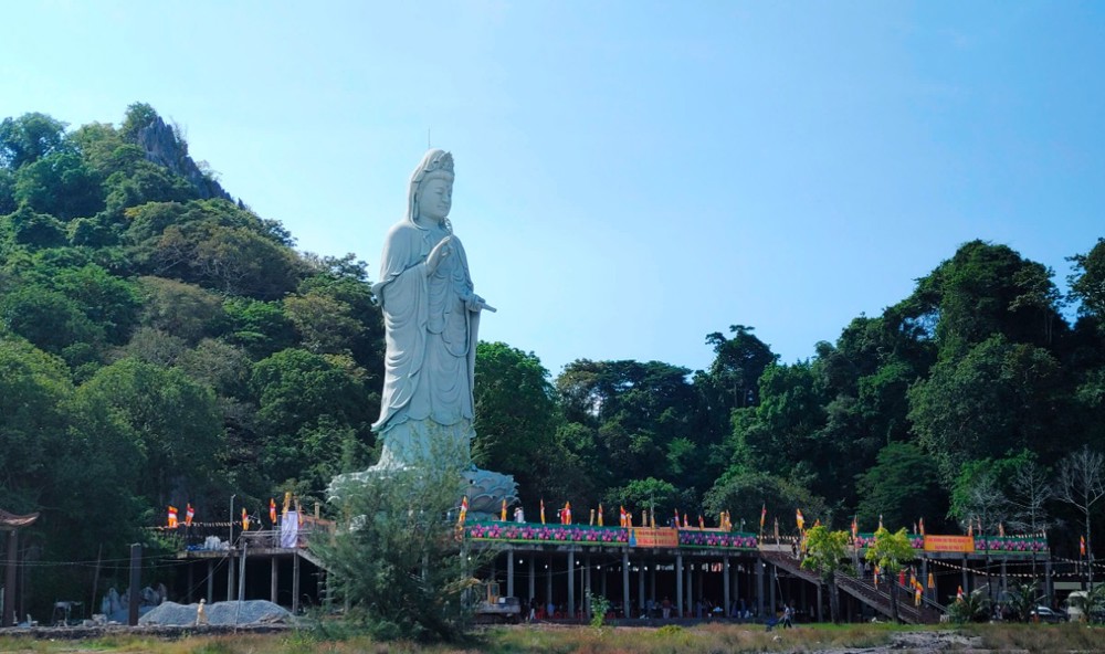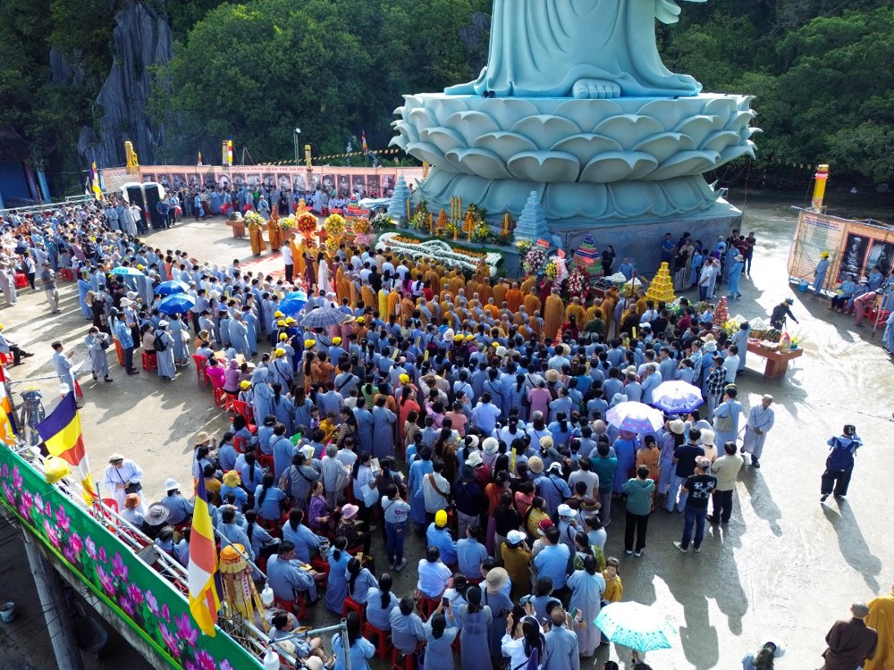 Tôn tượng Quán Thế Âm Bồ-tát cao 33 mét được khởi công vào ngày 19/2 âm lịch năm Quý Mão, sau hơn hai năm kiến tạo và xây dựng nay đã hoàn thành phần tôn tượng. Trong không khí thiêng liêng của ngày vía Đức Quán Thế Âm, buổi lễ Yểm tâm - Hô thần nhập tượng được Hòa thượng Thích Huệ Thông chủ trì với các nghi thức tâm linh Phật giáo truyền thống: cung thỉnh chư Tôn đức tác pháp an vị, tụng kinh chú nguyện, trì chú Đại bi, niêm hương bạch Phật và thực hiện nghi thức nhập linh khí cho tôn tượng.