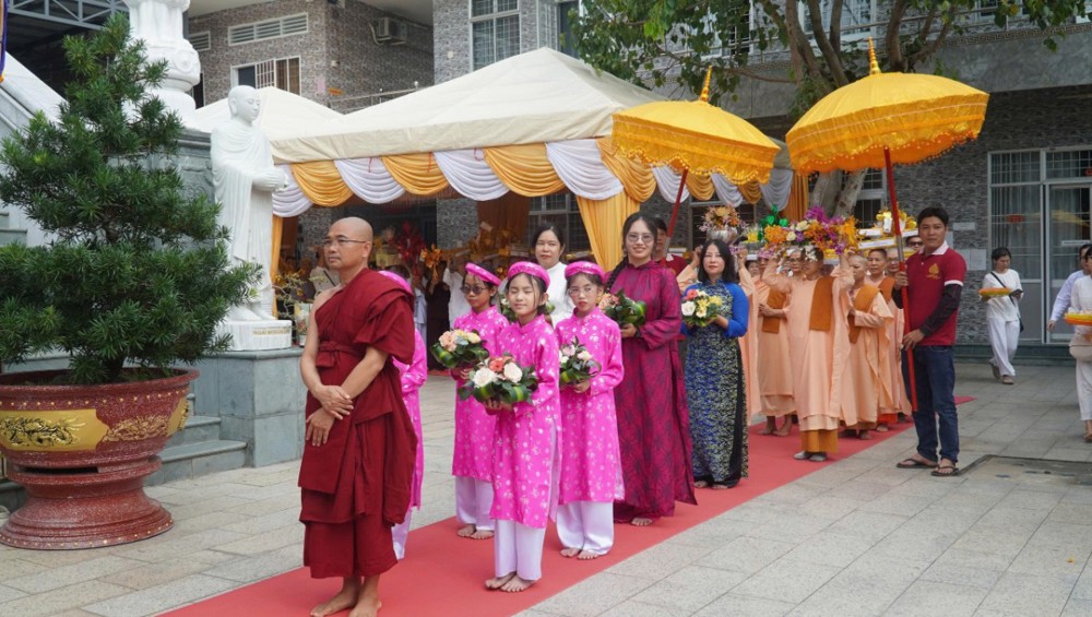Buổi lễ dưới sự chứng minh và tham dự của Trưởng lão Hòa thượng Tăng Định – Trụ trì chùa Kỳ Viên (610 Nguyễn Đình Chiểu, phường Bàn Cờ, TP. HCM), cùng 17 vị Tỳ-khưu an cư tại bổn tự, 1 Sa-di và 20 Tu nữ tùng hạ.