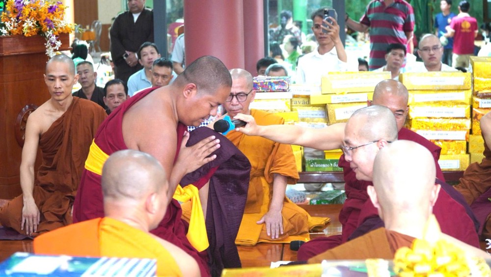 Người được thọ Y Kathina là Đại đức Thiện Ý (Manokusala). Đại đức Pháp Hảo và Đại đức Chánh Niệm đã trang nghiêm đọc tuyên ngôn giao Y Kathina theo nghi thức truyền thống.