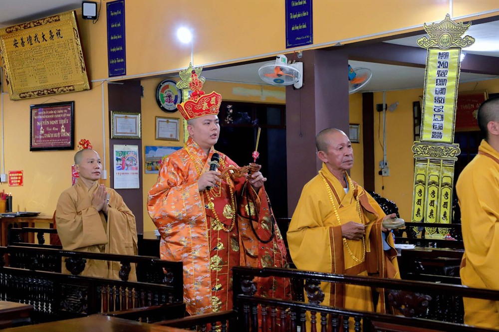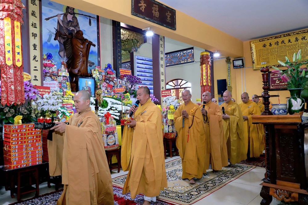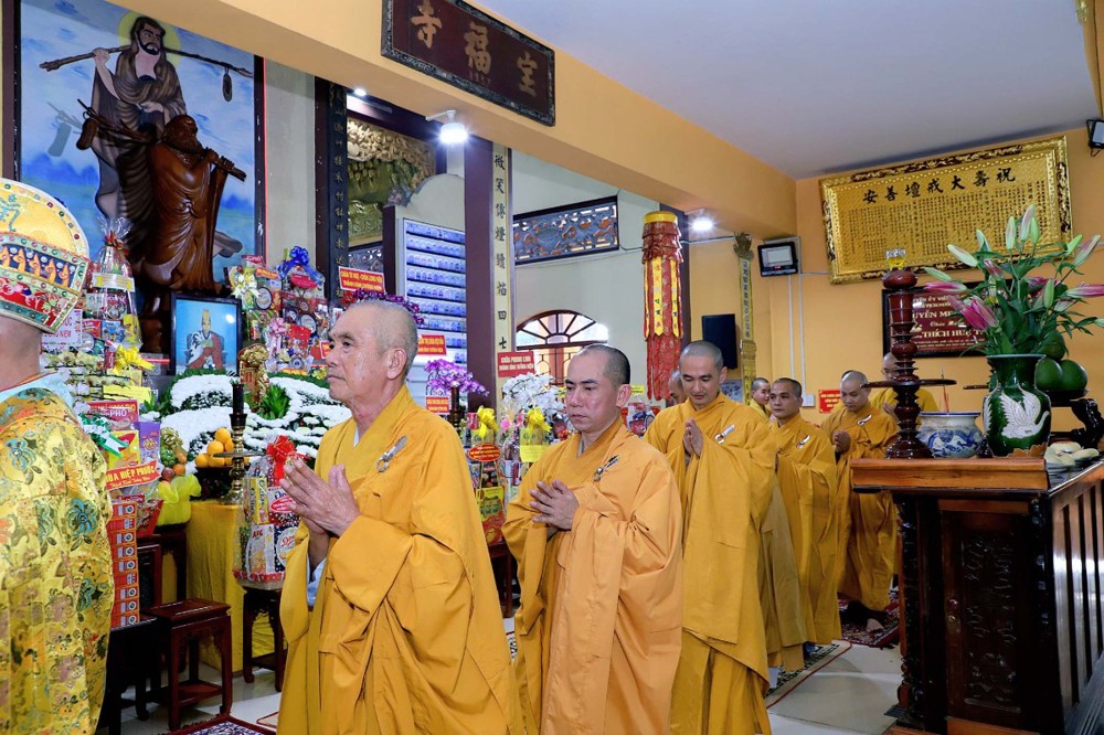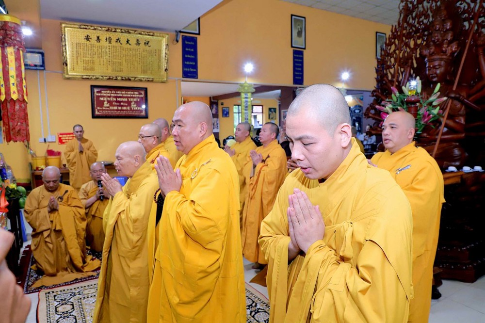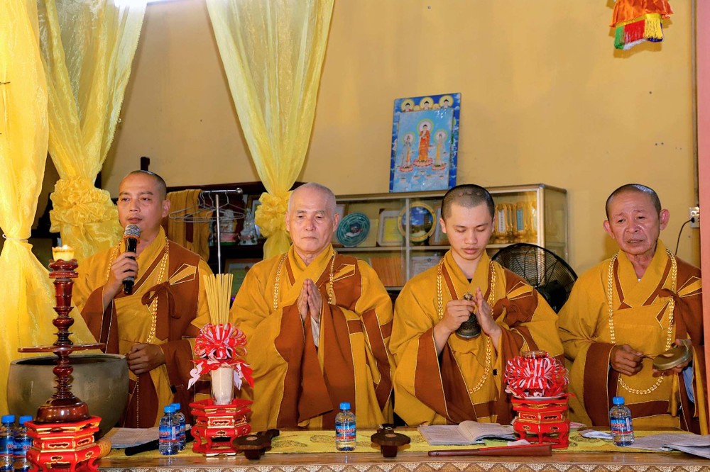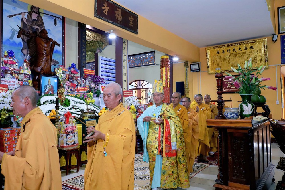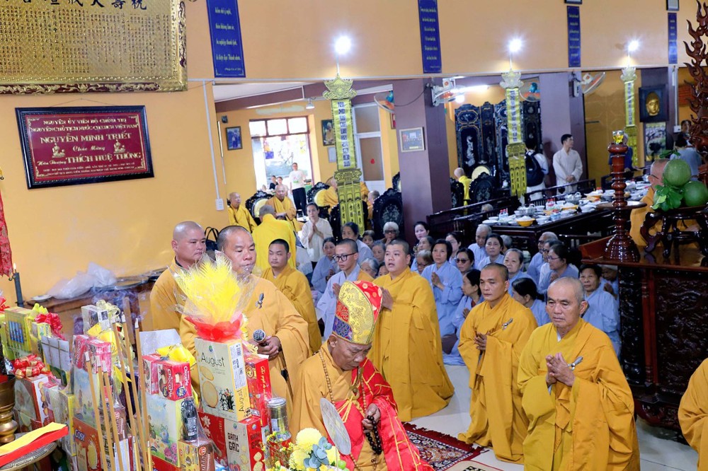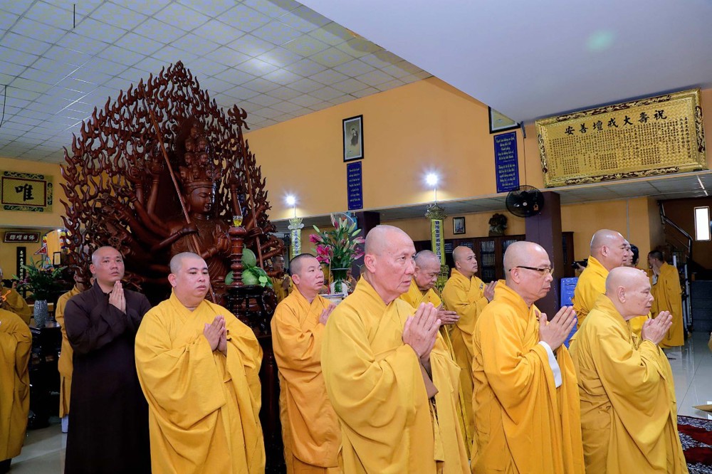 Nhân lễ Tưởng niệm Húy nhựt Đại lão HT.Thích Thiện An, ĐĐ. Thích Huệ Nghiêm – Phó Thư ký BTS PG TP.HCM, phụ trách Văn phòng Ban Trị sự PG tỉnh Bình Dương (cũ) đương vi sám chủ, cùng chư Tôn đức Ban kinh sư quang lâm đàn tràng thỉnh Tam bảo và đăng đàn Chẩn tế cầu siêu bạt độ, gia tâm nguyện lực kết nối năng lượng tích cực, nguyện cầu cho chư hương linh phát tâm quy y Tam bảo nương vào nguyện lực từ bi để âm dương đồng lưỡng lợi hộ trì quốc gia, đạo pháp xương minh, thanh bình.