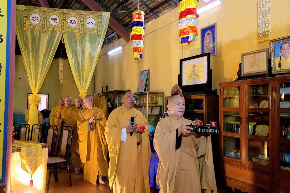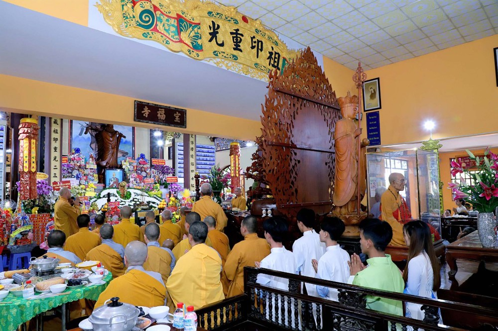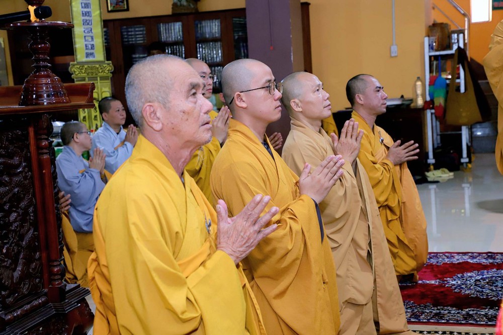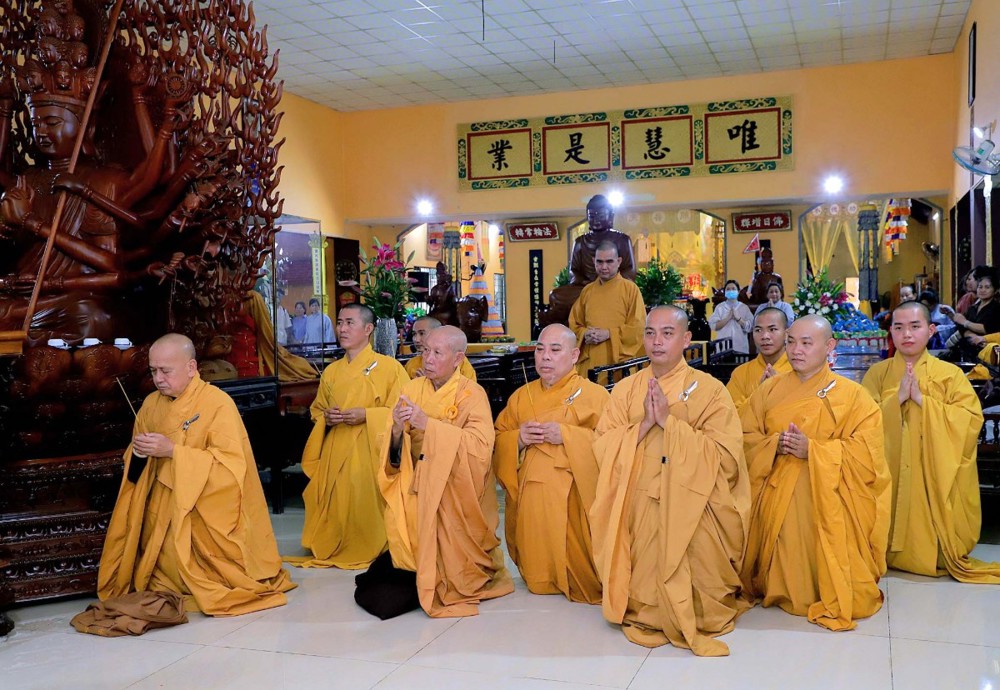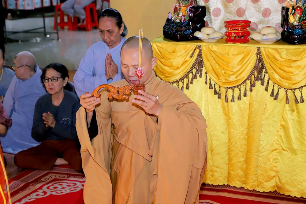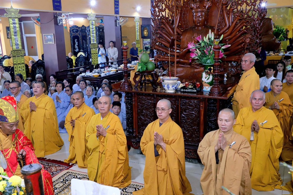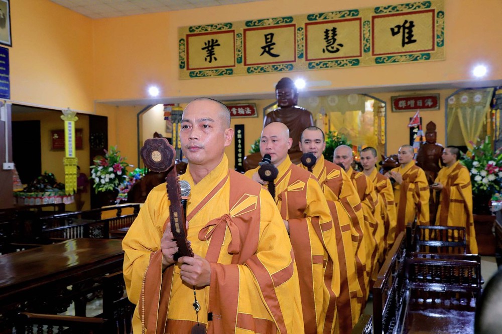 Nhân lễ Tưởng niệm Húy nhựt Đại lão HT.Thích Thiện An, ĐĐ. Thích Huệ Nghiêm – Phó Thư ký BTS PG TP.HCM, phụ trách Văn phòng Ban Trị sự PG tỉnh Bình Dương (cũ) đương vi sám chủ, cùng chư Tôn đức Ban kinh sư quang lâm đàn tràng thỉnh Tam bảo và đăng đàn Chẩn tế cầu siêu bạt độ, gia tâm nguyện lực kết nối năng lượng tích cực, nguyện cầu cho chư hương linh phát tâm quy y Tam bảo nương vào nguyện lực từ bi để âm dương đồng lưỡng lợi hộ trì quốc gia, đạo pháp xương minh, thanh bình.