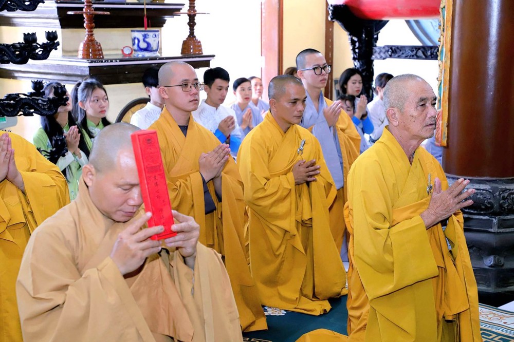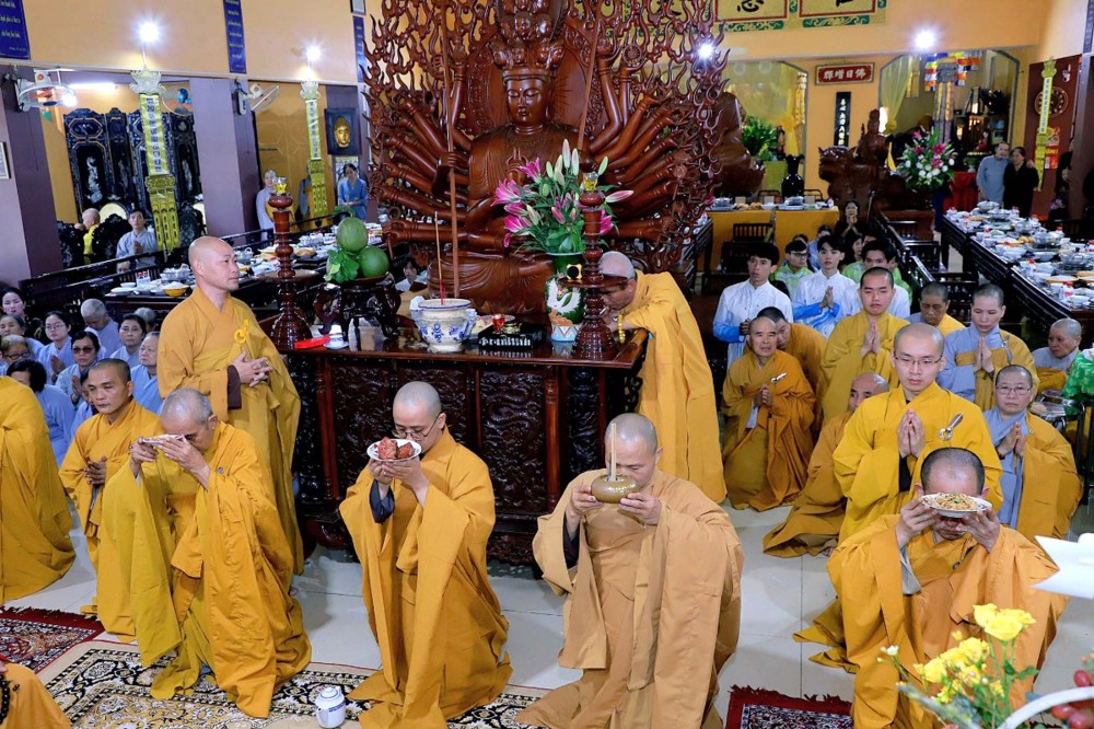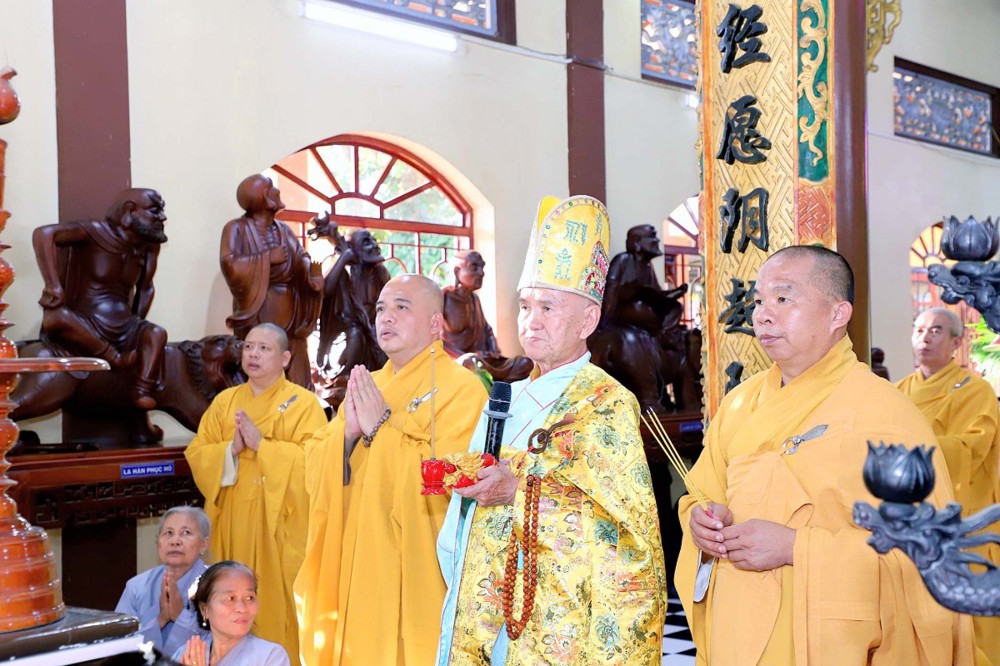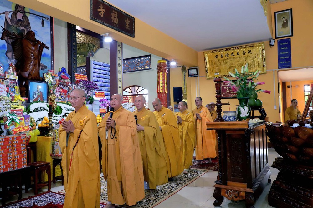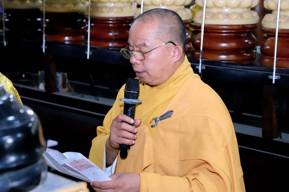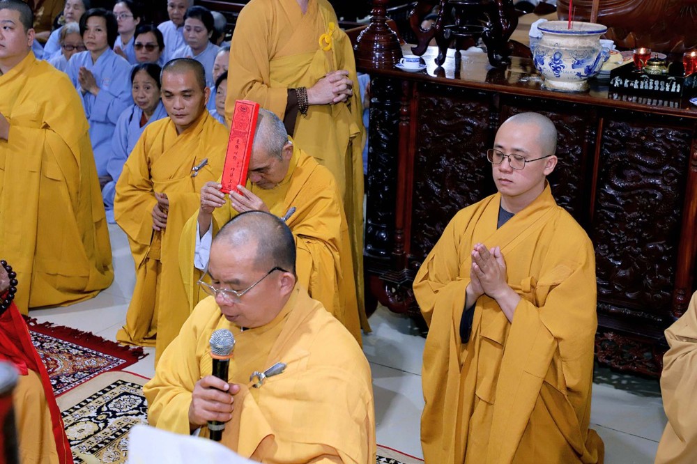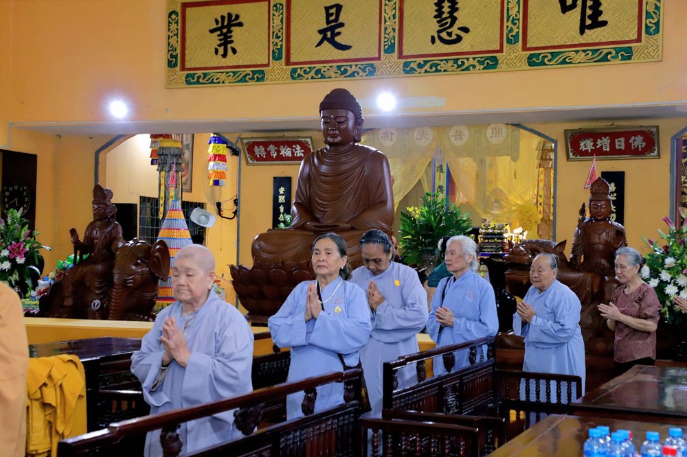 Nhân lễ Tưởng niệm Húy nhựt Đại lão HT.Thích Thiện An, ĐĐ. Thích Huệ Nghiêm – Phó Thư ký BTS PG TP.HCM, phụ trách Văn phòng Ban Trị sự PG tỉnh Bình Dương (cũ) đương vi sám chủ, cùng chư Tôn đức Ban kinh sư quang lâm đàn tràng thỉnh Tam bảo và đăng đàn Chẩn tế cầu siêu bạt độ, gia tâm nguyện lực kết nối năng lượng tích cực, nguyện cầu cho chư hương linh phát tâm quy y Tam bảo nương vào nguyện lực từ bi để âm dương đồng lưỡng lợi hộ trì quốc gia, đạo pháp xương minh, thanh bình.