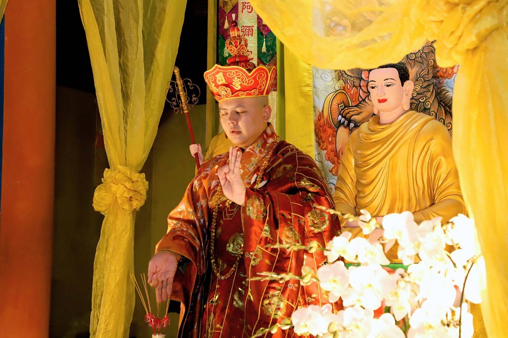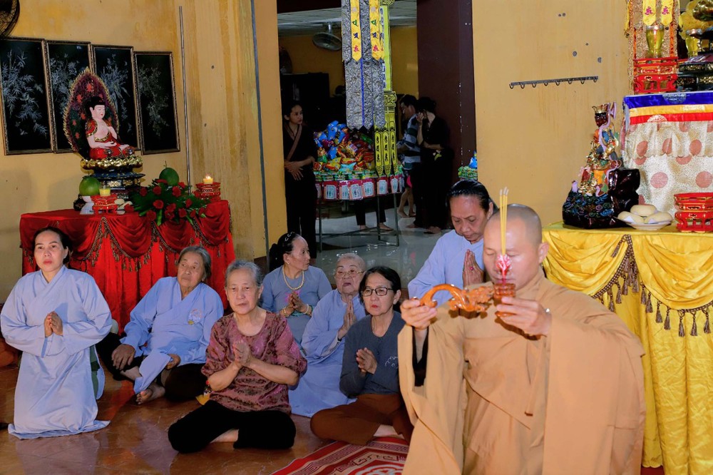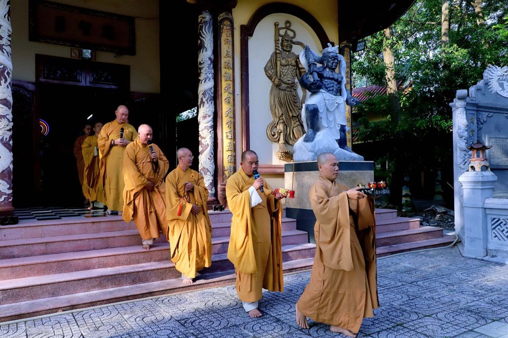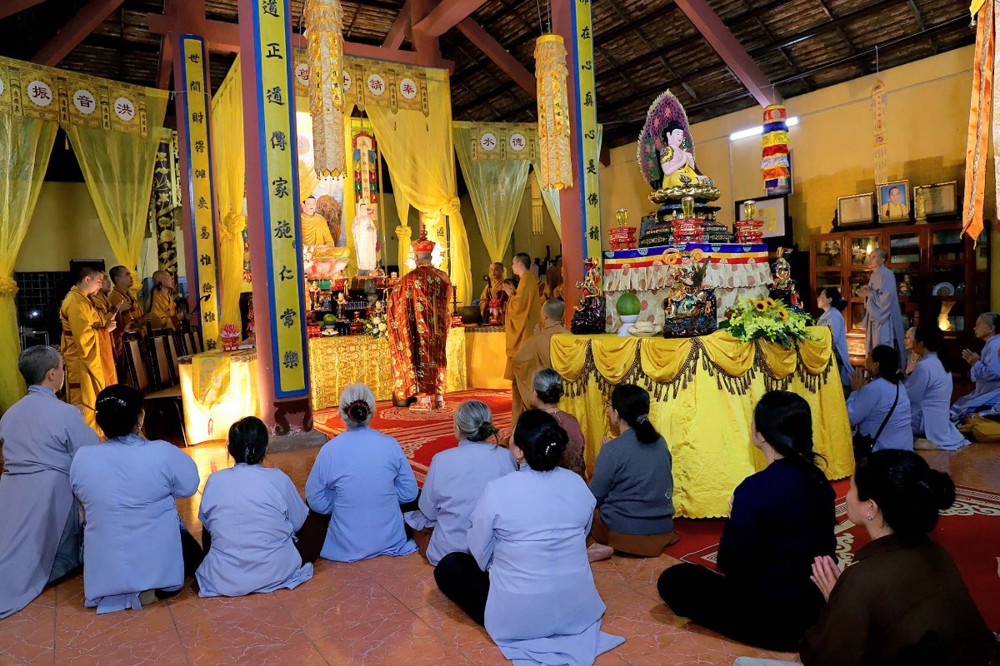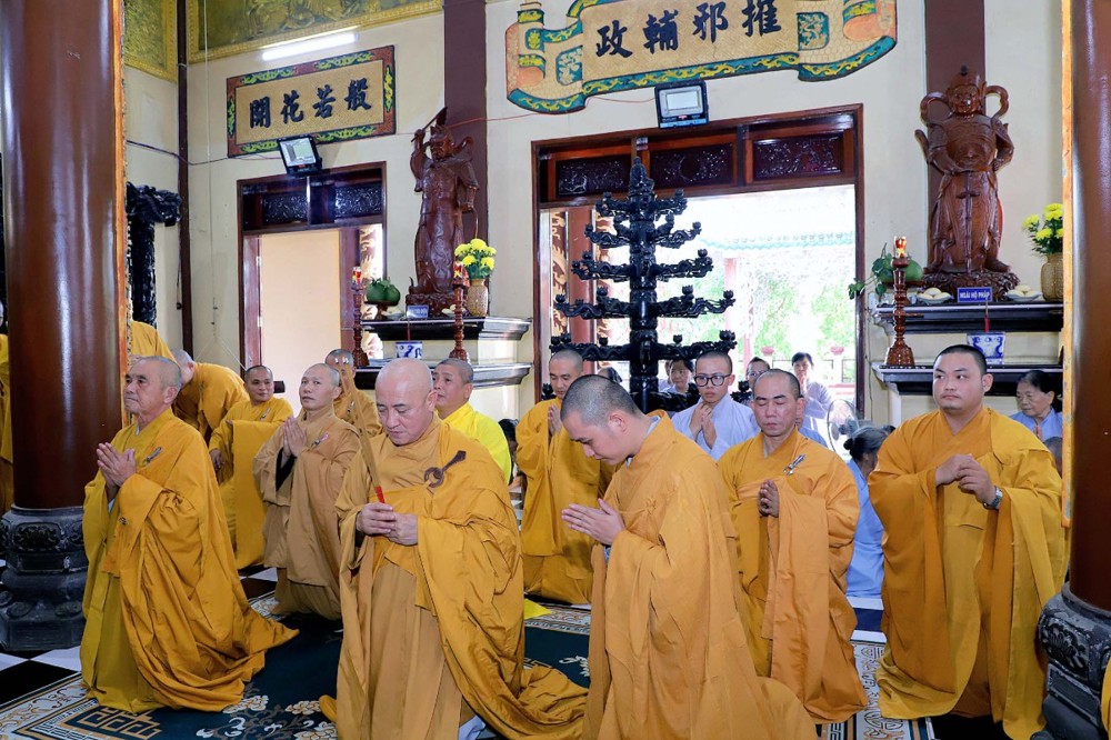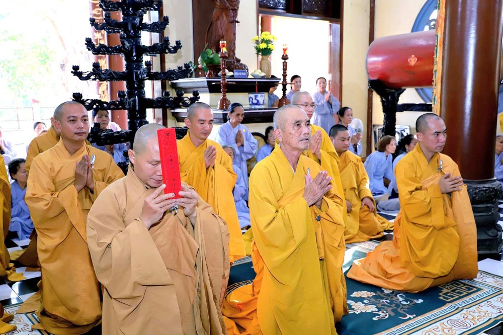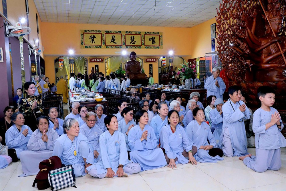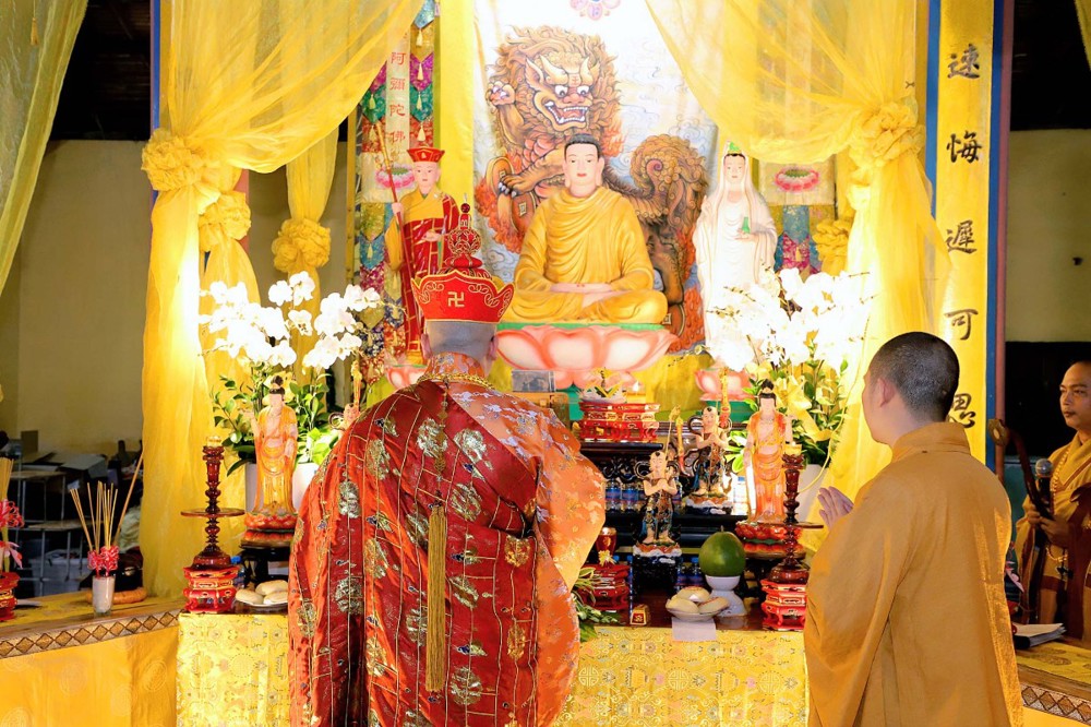 Nhân lễ Tưởng niệm Húy nhựt Đại lão HT.Thích Thiện An, ĐĐ. Thích Huệ Nghiêm – Phó Thư ký BTS PG TP.HCM, phụ trách Văn phòng Ban Trị sự PG tỉnh Bình Dương (cũ) đương vi sám chủ, cùng chư Tôn đức Ban kinh sư quang lâm đàn tràng thỉnh Tam bảo và đăng đàn Chẩn tế cầu siêu bạt độ, gia tâm nguyện lực kết nối năng lượng tích cực, nguyện cầu cho chư hương linh phát tâm quy y Tam bảo nương vào nguyện lực từ bi để âm dương đồng lưỡng lợi hộ trì quốc gia, đạo pháp xương minh, thanh bình.
