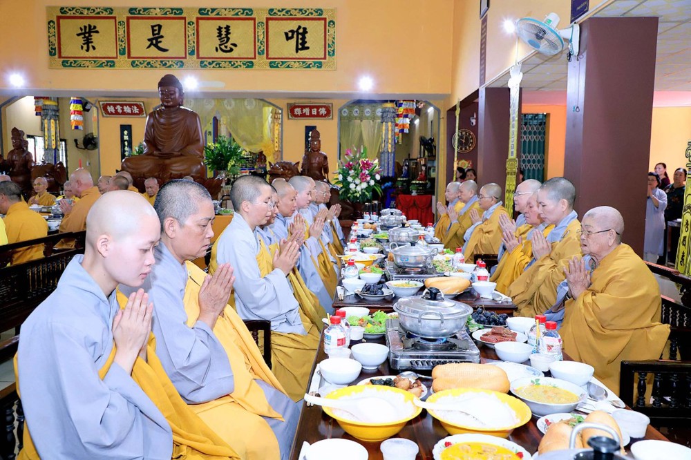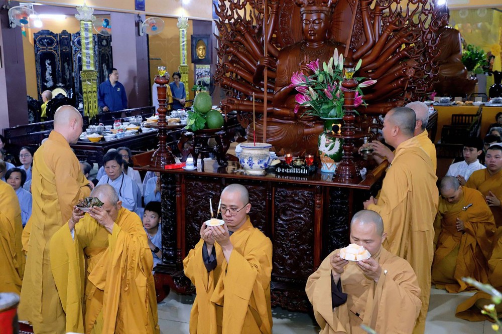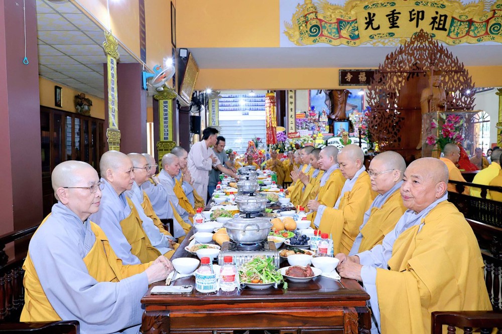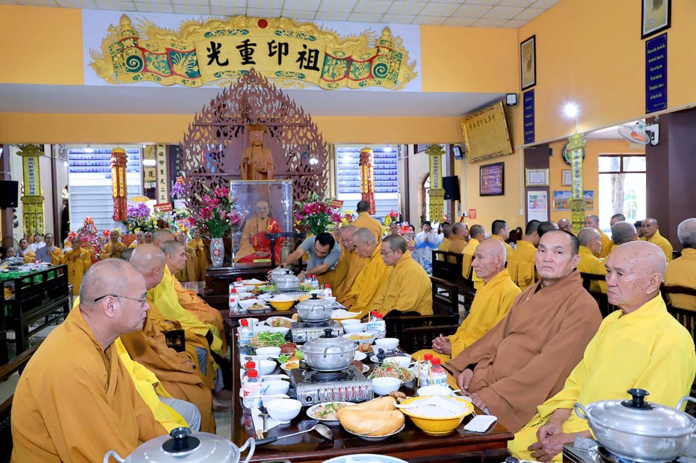 Dịp này, HT.Thích Huệ Thông – Phó Chủ tịch HĐTS, Trưởng ban Pháp chế T.Ư, Cố vấn Ban Trị sự GHPG Việt Nam TP. Hồ Chí Minh hướng dẫn môn đồ tứ chúng thiết lễ trai tăng, tác bạch cúng dường hiện tiền chư Tôn thiền đức Tăng Ni, bày tỏ niềm tri ân sâu sắc đến quang lâm tưởng niệm Ân sư và hồi hướng công đức đến Giác linh Trưởng lão Hòa thượng Thích Thiện An.