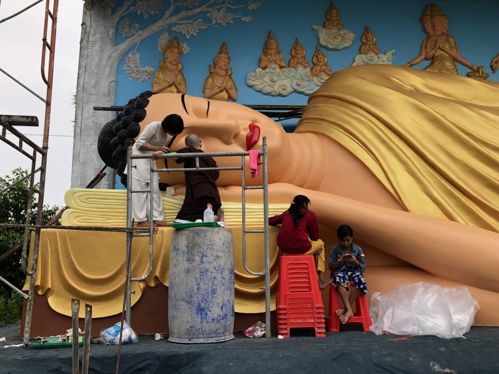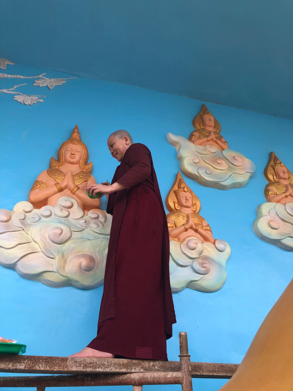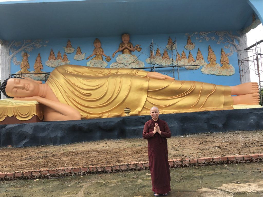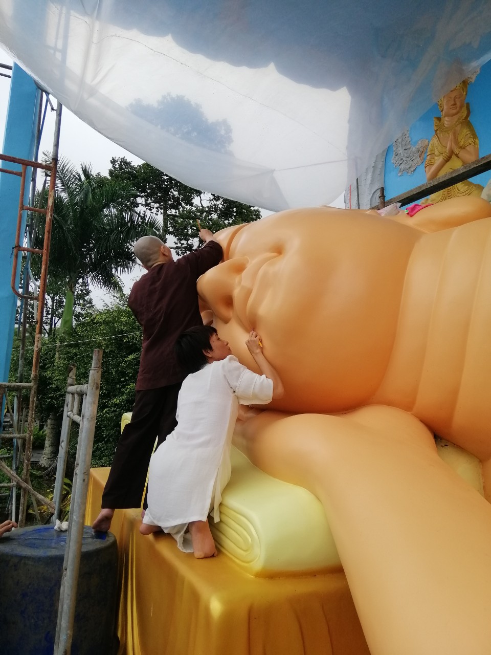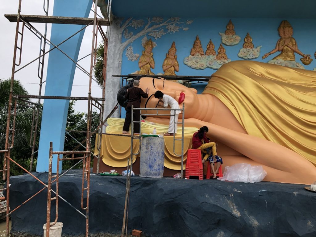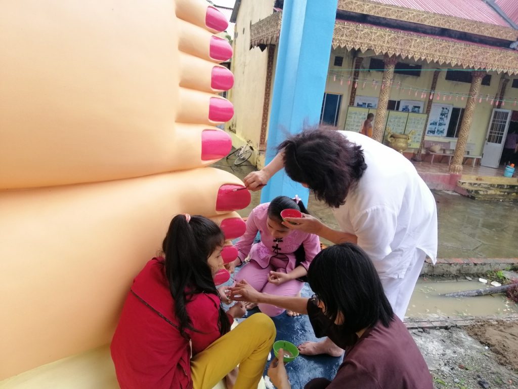 PSO - Vào ngày 10/10/2020 Hưởng ứng lời mời gọi của ĐĐ. Thiên Giả - Trụ trì chùa Cosdon, tỉnh Bạc Liêu về việc phối hợp cùng nhà chùa hoàn thành sơn tượng kim thân Phật Tổ trong tư thế nằm, dài 17m để kịp chuẩn bị cho đại lễ Dâng Y Kathina sắp tới.