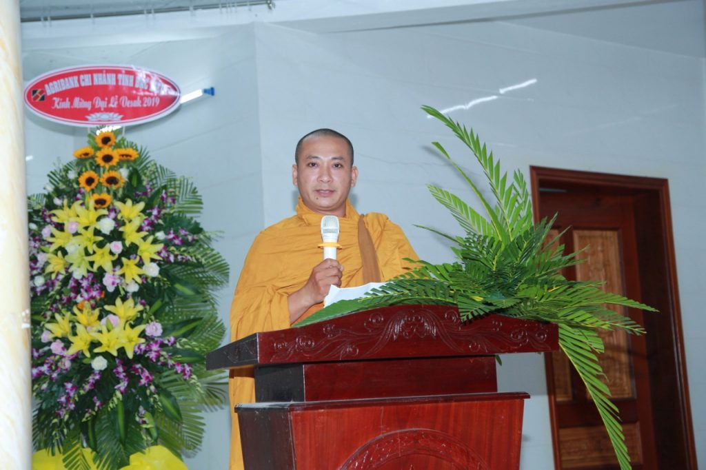 Đại đức Thích Minh Niệm - Trụ trì Tịnh xá Ngọc Lâm đọc diễn văn Phật đản của đức Hòa thượng Chủ tịch HĐTS GHPGVN.