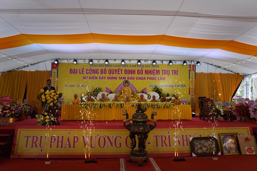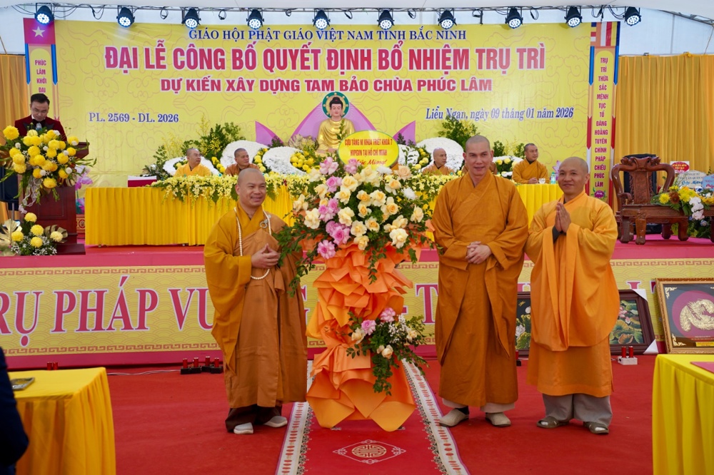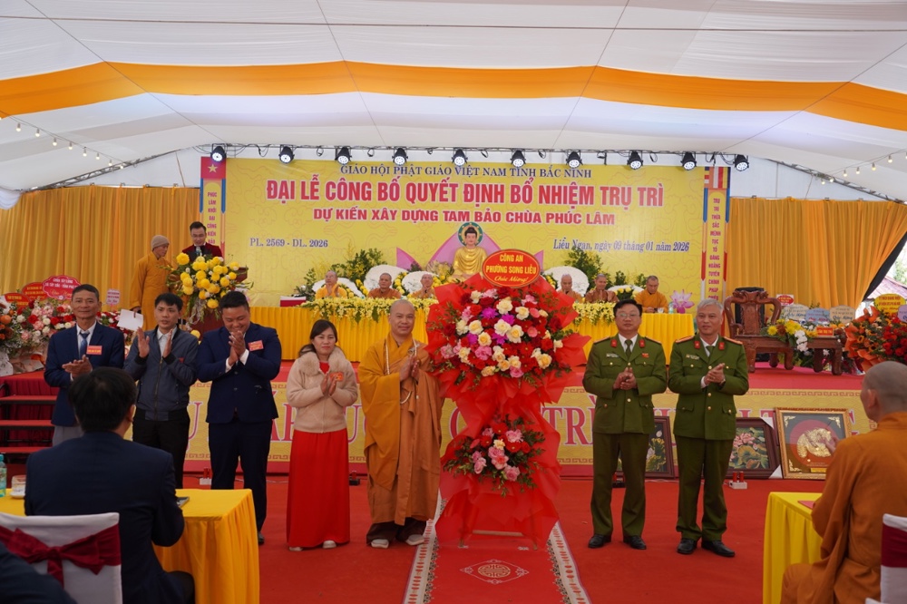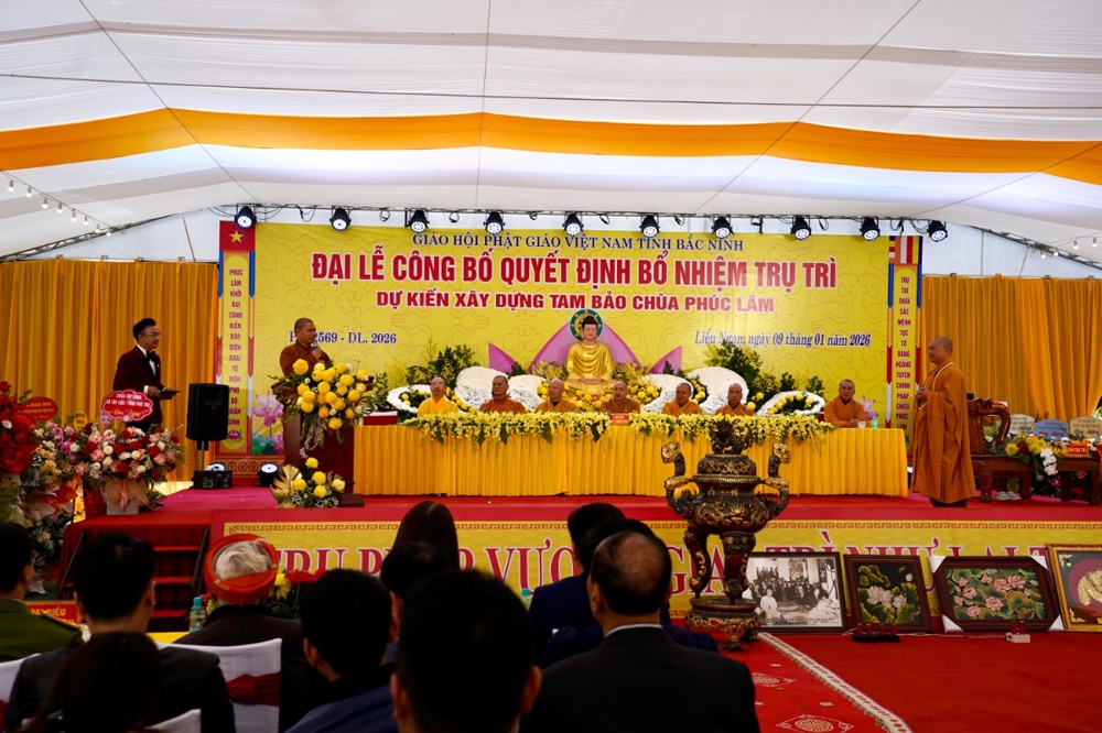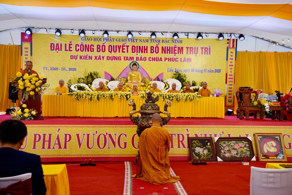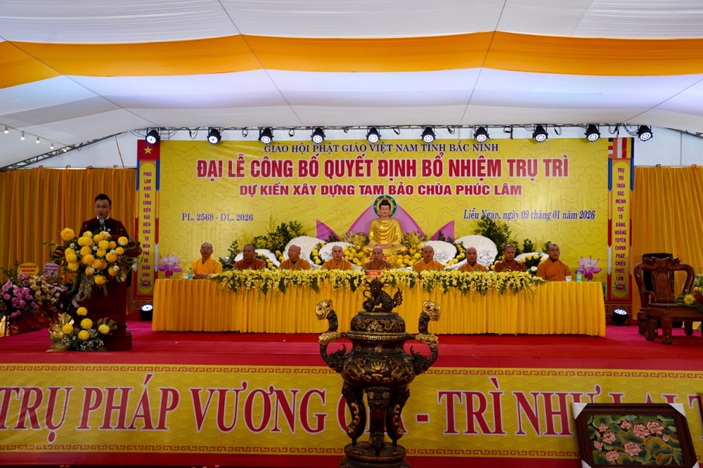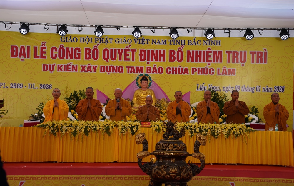 PSO - Sáng ngày 09/1/2026 (tức ngày 21/11 năm Ất Tỵ), Đại lễ công bố Quyết định bổ nhiệm trụ trì và dự kiến xây dựng Tam Bảo được long trọng tổ chức tại chùa Phúc Lâm, Tổ dân phố Liễu Ngạn, phường Song Liễu, tỉnh Bắc Ninh.