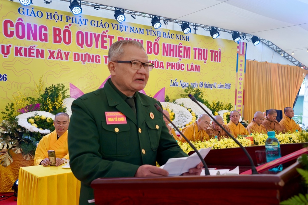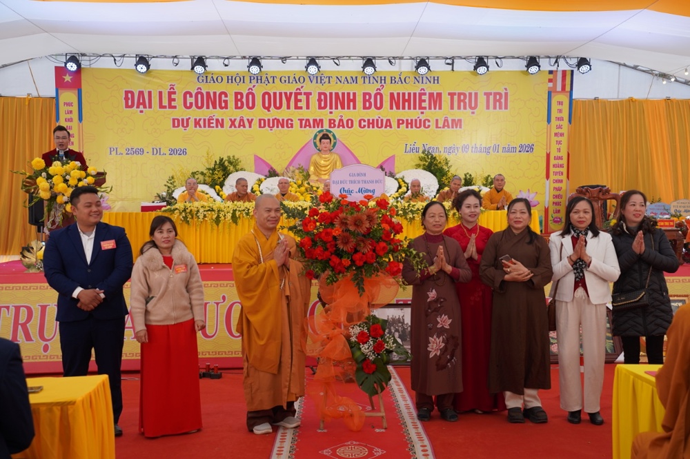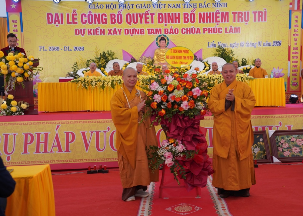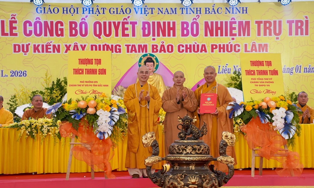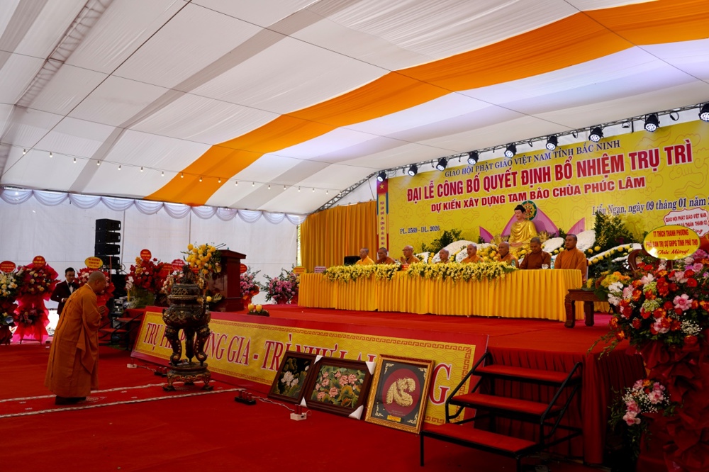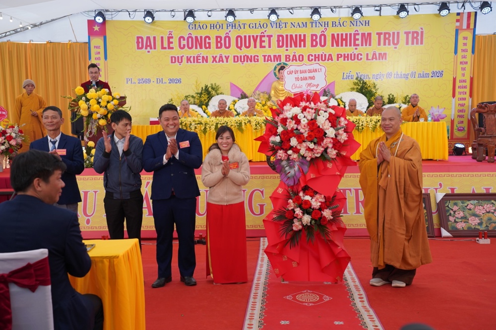 PSO - Sáng ngày 09/1/2026 (tức ngày 21/11 năm Ất Tỵ), Đại lễ công bố Quyết định bổ nhiệm trụ trì và dự kiến xây dựng Tam Bảo được long trọng tổ chức tại chùa Phúc Lâm, Tổ dân phố Liễu Ngạn, phường Song Liễu, tỉnh Bắc Ninh.