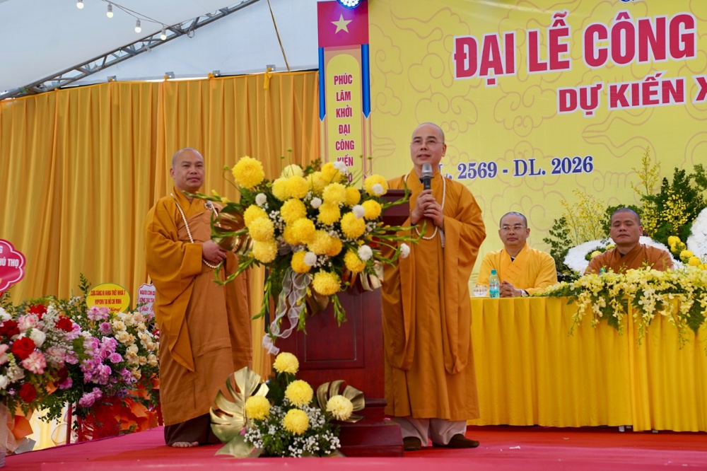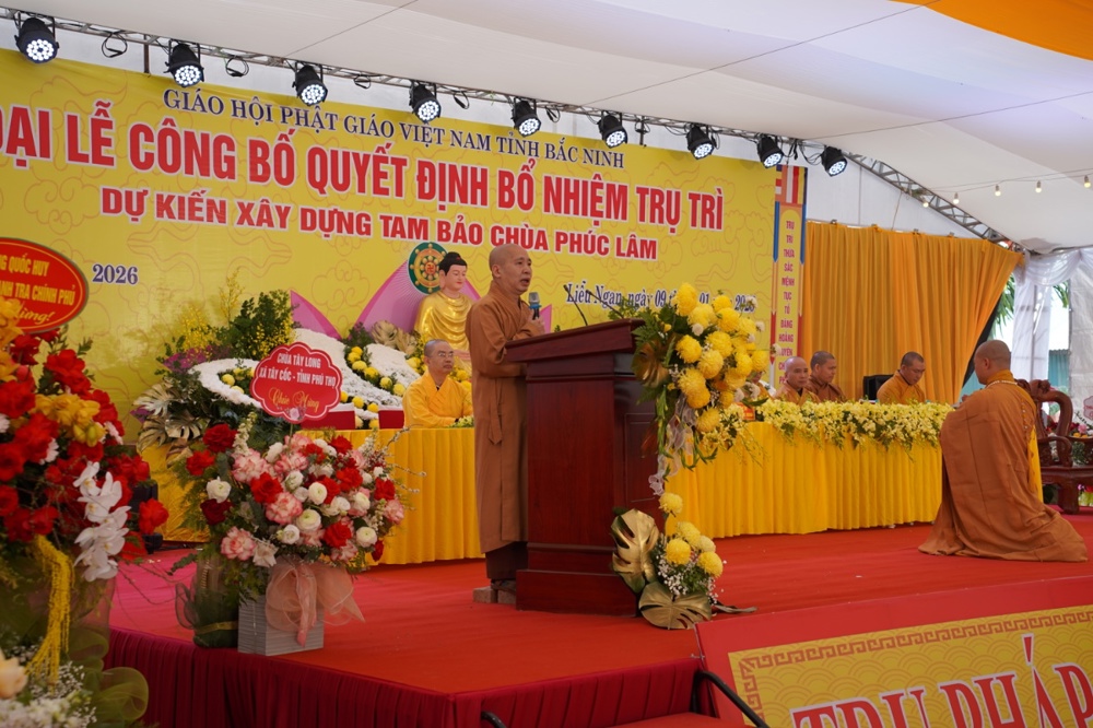 Thượng tọa Thích Thanh Tuấn – Phó Tổng Thư ký, Chánh Văn phòng Trung ương GHPGVN, nghiệp sư – sư phụ của Đại đức Tân trụ trì đã quang lâm ban đạo từ, gửi lời chúc mừng đến Đại đức Tân trụ trì và toàn thể đạo tràng Phật tử. Thượng tọa nhấn mạnh việc công bố Quyết định bổ nhiệm trụ trì chùa Phúc Lâm là sự kiện có ý nghĩa quan trọng, thể hiện sự quan tâm sâu sắc của Giáo hội và đáp ứng niềm mong mỏi bấy lâu của nhân dân địa phương.