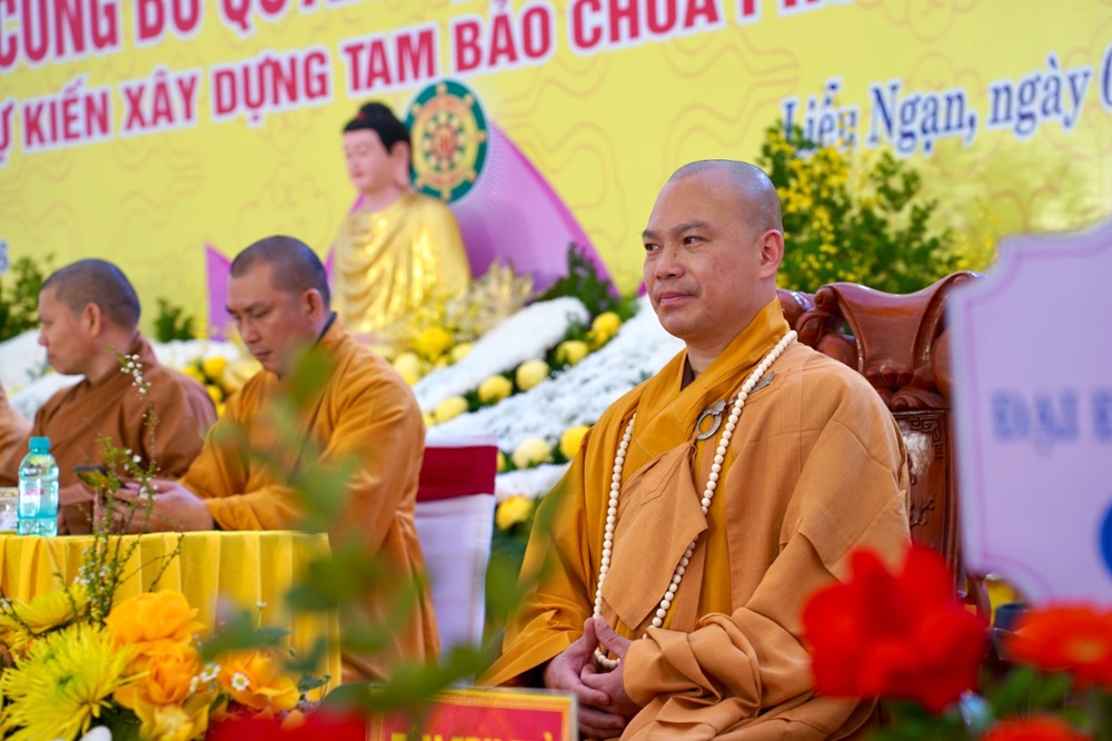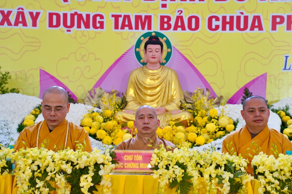 Đại đức Thích Thanh Đức đã đối trước Tam Bảo và chư Tăng chứng minh, trang nghiêm lắng nghe công bố Quyết định bổ nhiệm.