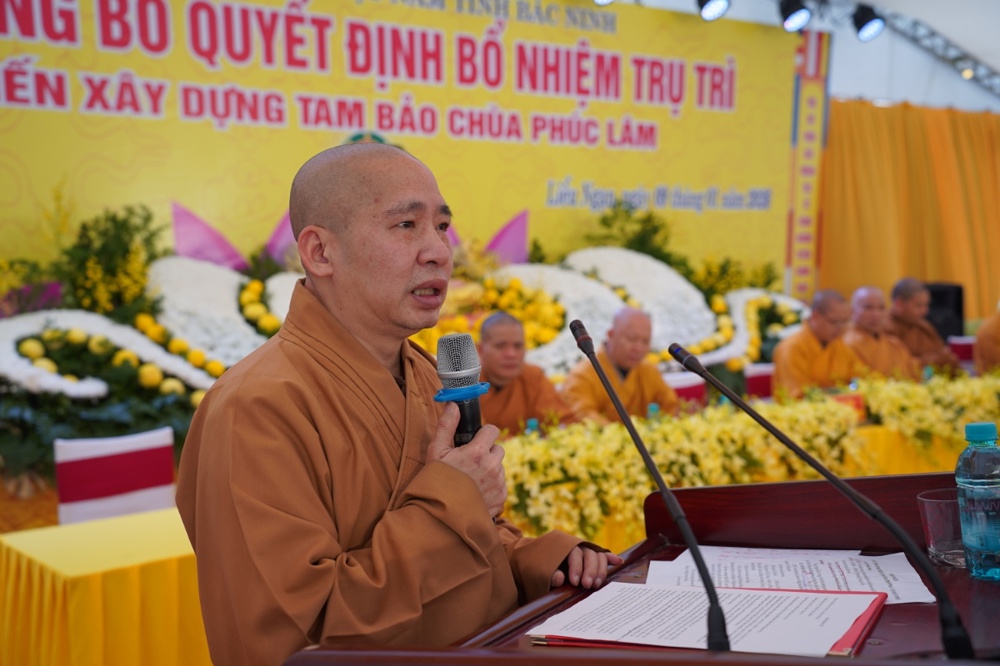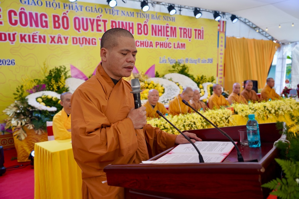 Tại buổi lễ, Thượng tọa Thích Nhuận Hữu – Ủy viên Ban Thường trực, Chánh Văn phòng BTS GHPGVN tỉnh Bắc Ninh đã tuyên đọc Quyết định bổ nhiệm trụ trì chùa Phúc Lâm.