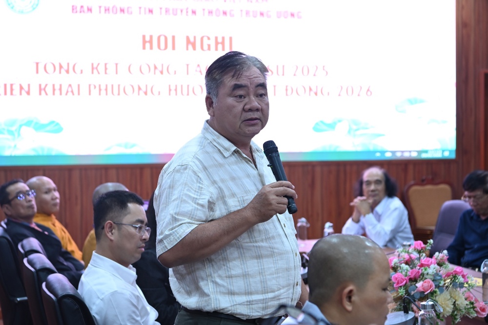Tại phiên thảo luận, hội nghị đã tiếp nhận nhiều ý kiến đóng góp tâm huyết nhằm kiện toàn công tác thông tin truyền thông năm 2026. Thay mặt Ban, Thượng tọa Thích Tâm Hải, Phó Trưởng ban Thường trực Ban TTTT Trung ương, đã có những đánh giá khách quan về thực trạng báo chí Phật giáo hiện nay. Thượng tọa ghi nhận sự nỗ lực của các cơ quan ngôn luận như báo Giác Ngộ, tạp chí Hoa Ưu Đàm, trang Thư viện Hoa Sen... khi liên tục có những bài viết chất lượng, nhận được sự tín nhiệm lớn từ cộng đồng Phật tử.