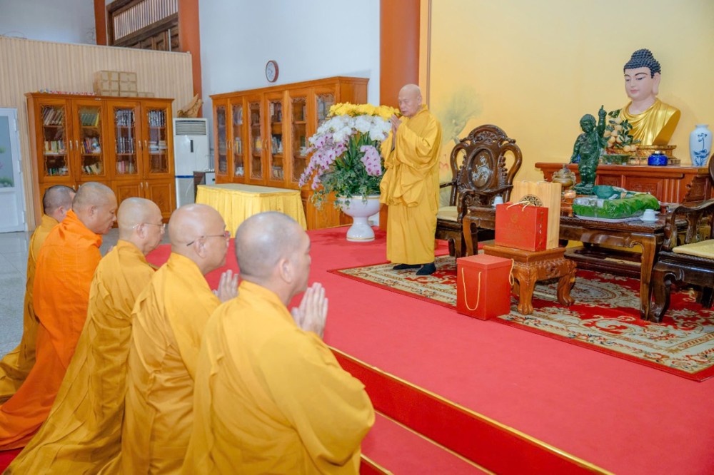 Đáp lại lời tác bạch, Trưởng lão Hòa thượng Chủ tịch đã bày tỏ sự hoan hỷ trước những thành tựu mà Phật giáo tỉnh Đồng Nai đã đạt được, tán dương tinh thần hòa hợp, đoàn kết của tập thể Ban Trị sự mới. Trong lời đạo từ sách tấn, Hòa thượng Chủ tịch chỉ đạo chư Tôn đức nhanh chóng triển khai các hoạt động Phật sự theo nghị quyết đã đề ra trong năm đầu nhiệm kỳ, tập trung cho công tác tổ chức Đại giới đàn để giữ gìn mạng mạch Phật pháp.