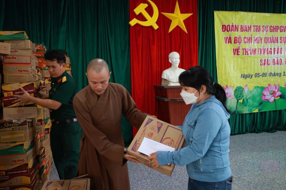 Phát biểu tại buổi trao quà, TT. Thích Quảng Tâm cho biết: với tinh thần từ bi và sẻ chia của đạo Phật, cũng như sự đồng hành của chính quyền, Phật giáo tỉnh đã kịp thời tổ chức các chuyến cứu trợ, vận động chư Tăng Ni và Phật tử cùng chung tay hỗ trợ bà con vượt qua khó khăn. Những phần quà tuy giá trị không lớn nhưng chứa đựng tình cảm, tấm lòng và sự quan tâm sâu sắc, mong góp phần giúp bà con sớm ổn định cuộc sống.