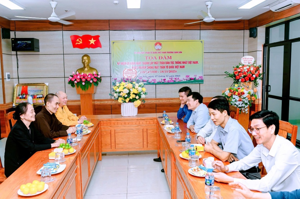 PSO - Nhân kỷ niệm 95 năm ngày Truyền thống Mặt trận Tổ quốc Việt Nam (18/11/1930 – 18/11/2025), ngày 17/11/2025, Ban Trị sự Giáo hội Phật giáo Việt Nam tỉnh Thanh Hoá do Thượng toạ Thích Tâm Định – Uỷ viên HĐTS, Trưởng BTS làm trưởng đoàn, đã đến thăm và chúc mừng Uỷ ban MTTQ phường Quảng Phú, Sầm Sơn.