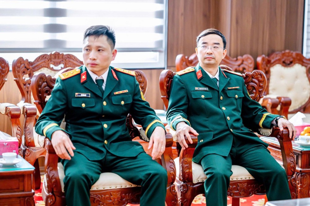 Tiếp đón đoàn, có Đại tá Vũ Mạnh Quỳnh - Phó Chỉ huy Trưởng Bộ chỉ huy Quân sự tỉnh; đại diện cán bộ, chiến sĩ cũng tiếp đón.