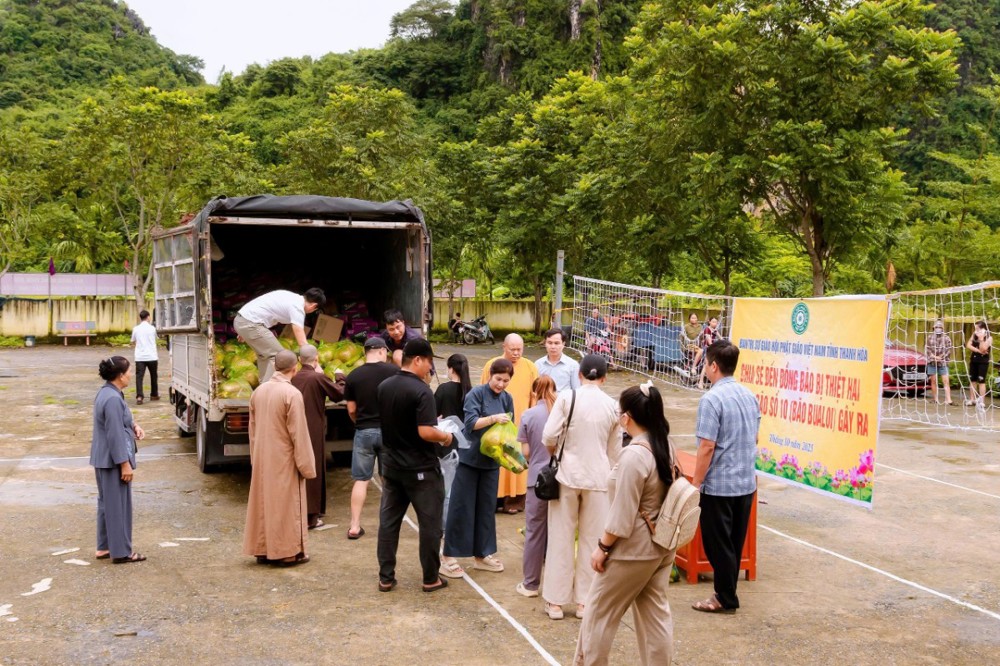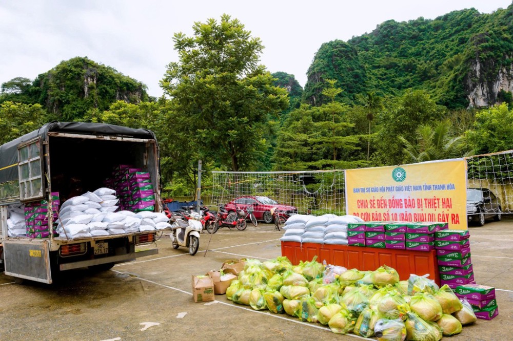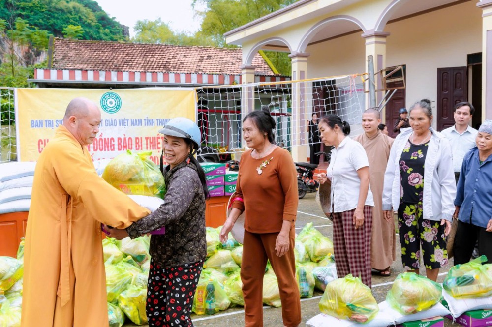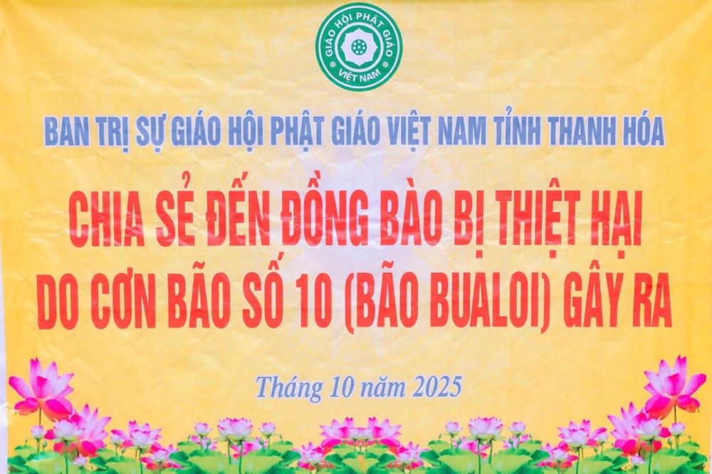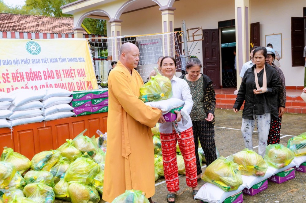 PSO – Chiều 07/10/2025, Ban Trị sự Giáo hội Phật giáo Việt Nam tỉnh Thanh Hóa, tiếp tục tổ chức đến thăm hỏi, động viên và trao tặng quà hỗ trợ đến bà con nhân dân chịu ảnh hưởng nặng nề bởi cơn bão số 10 vừa qua tại xã Cẩm Tú.