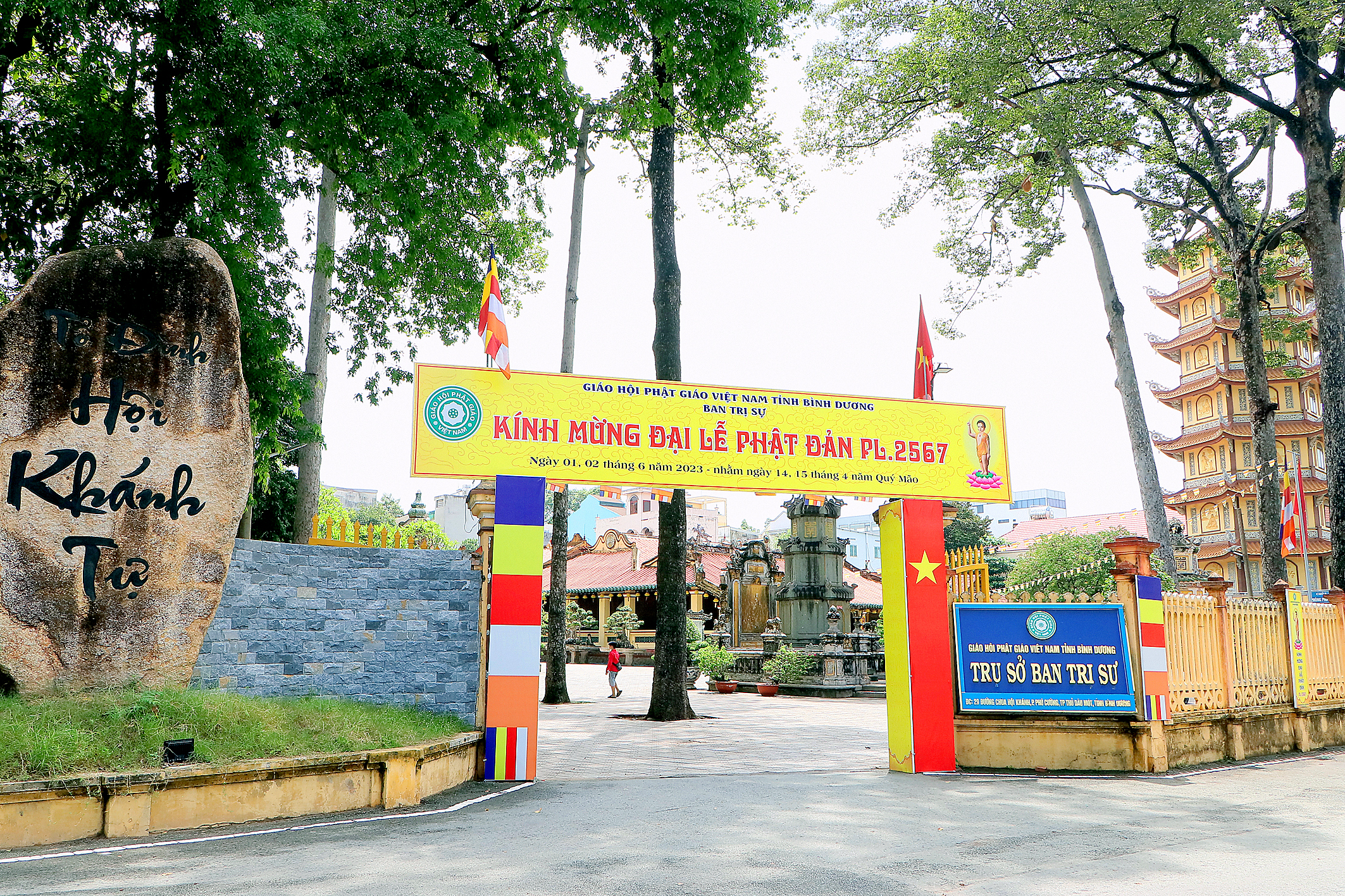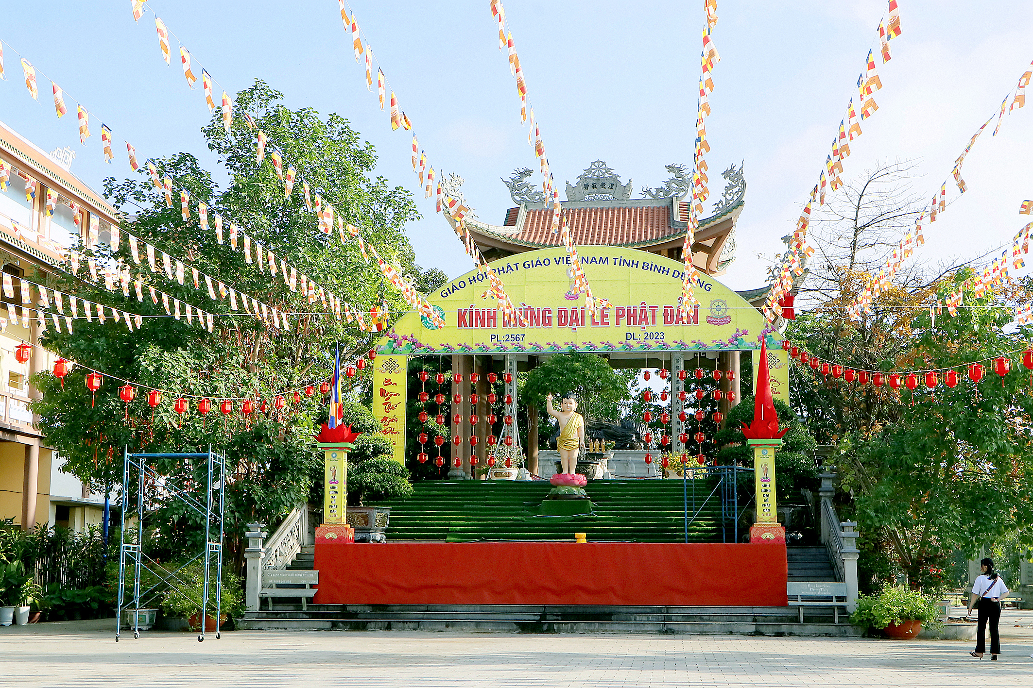 PSO - Những ngày này, không khí Đại lễ Phật đản đang tràn ngập trên các tự viện trên địa bàn tỉnh Bình Dương với cờ, hoa, lễ đài được Tăng Ni, Phật tử thiết trí nhằm hướng đến Đại lễ Phật đản PL. 2567 – DL. 2023 do Ban Trị sự Phật giáo tỉnh tổ chức vào sáng ngày 02/6/2023 (tức ngày 15/4 năm Quý Mão) tại Trung tâm Văn hóa tượng Phật Niết bàn – Tổ đình chùa Hội Khánh (phường Phú Cường, TP. Thủ Dầu Một).