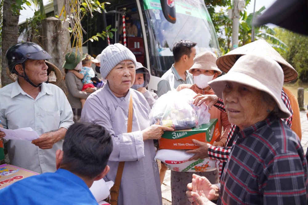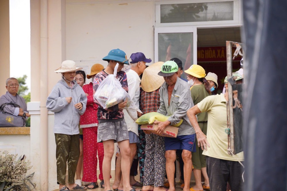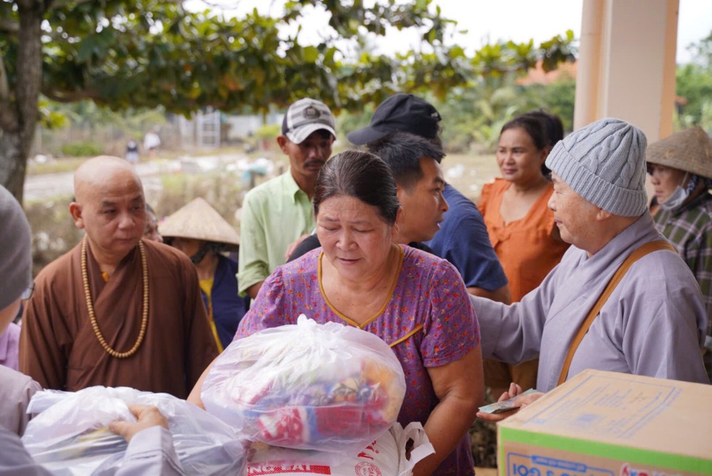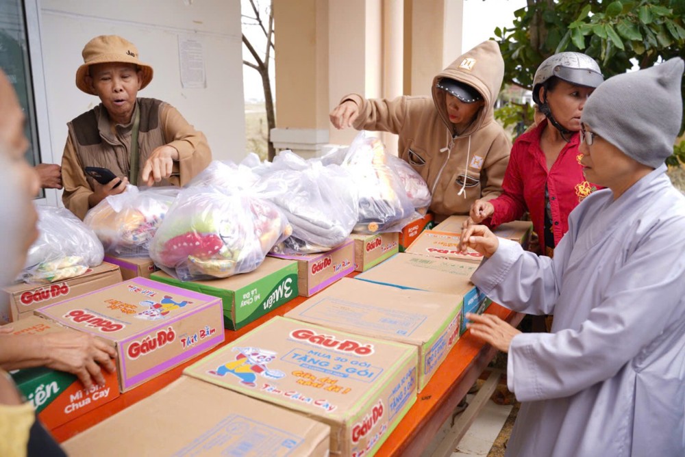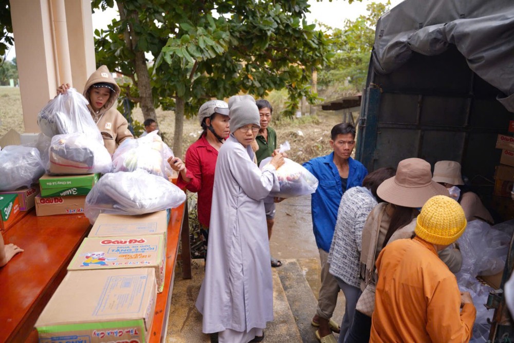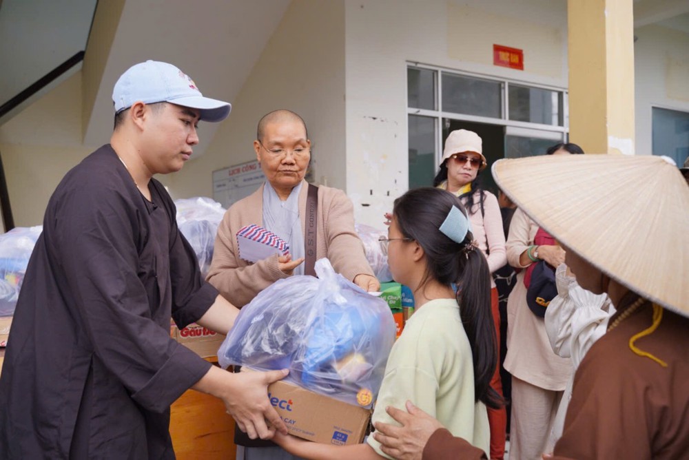 Sư cô cho biết những phần quà tuy nhỏ nhưng là tấm lòng của đoàn, mong góp thêm hơi ấm và động lực để bà con vượt qua giai đoạn này, tin tưởng rằng địa phương sẽ sớm khắc phục hậu quả và trở lại nhịp sống bình yên.