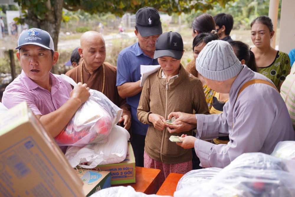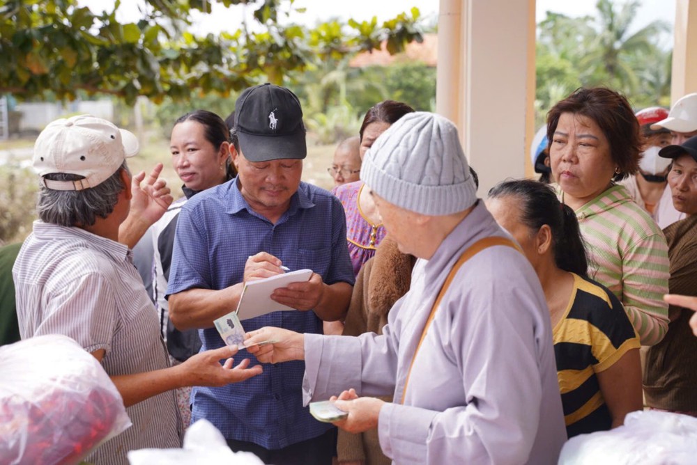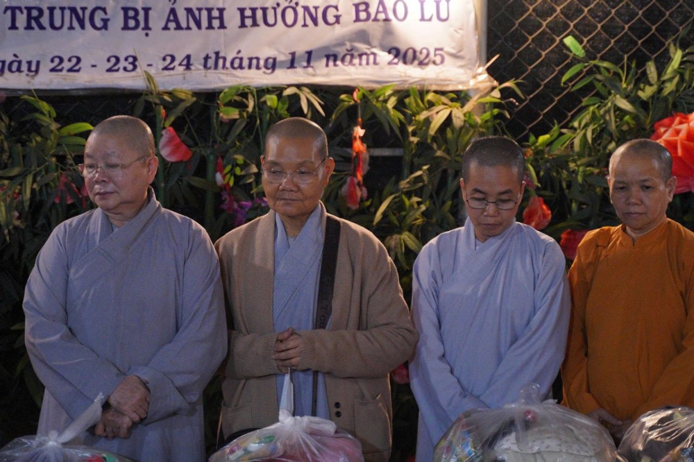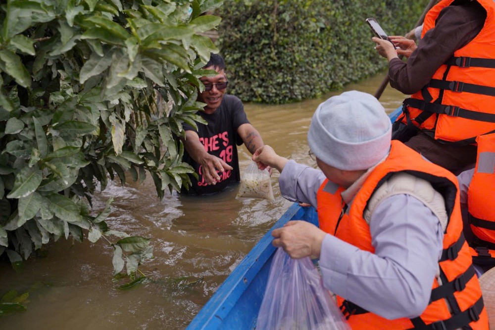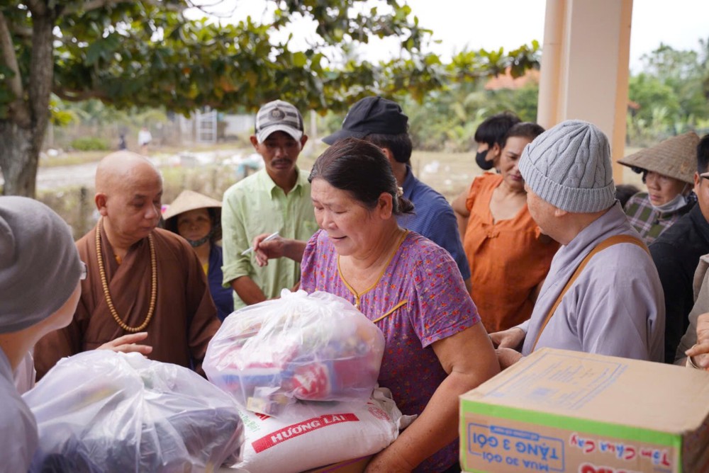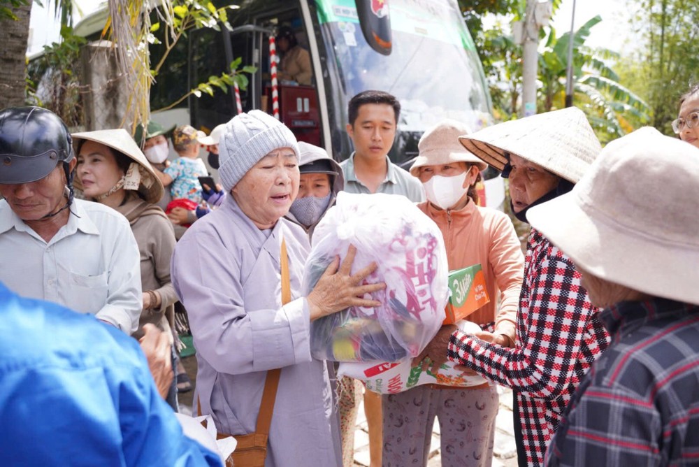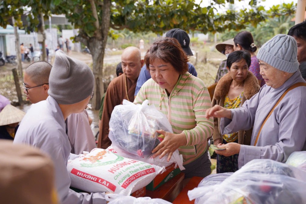 Sư cô cho biết những phần quà tuy nhỏ nhưng là tấm lòng của đoàn, mong góp thêm hơi ấm và động lực để bà con vượt qua giai đoạn này, tin tưởng rằng địa phương sẽ sớm khắc phục hậu quả và trở lại nhịp sống bình yên.