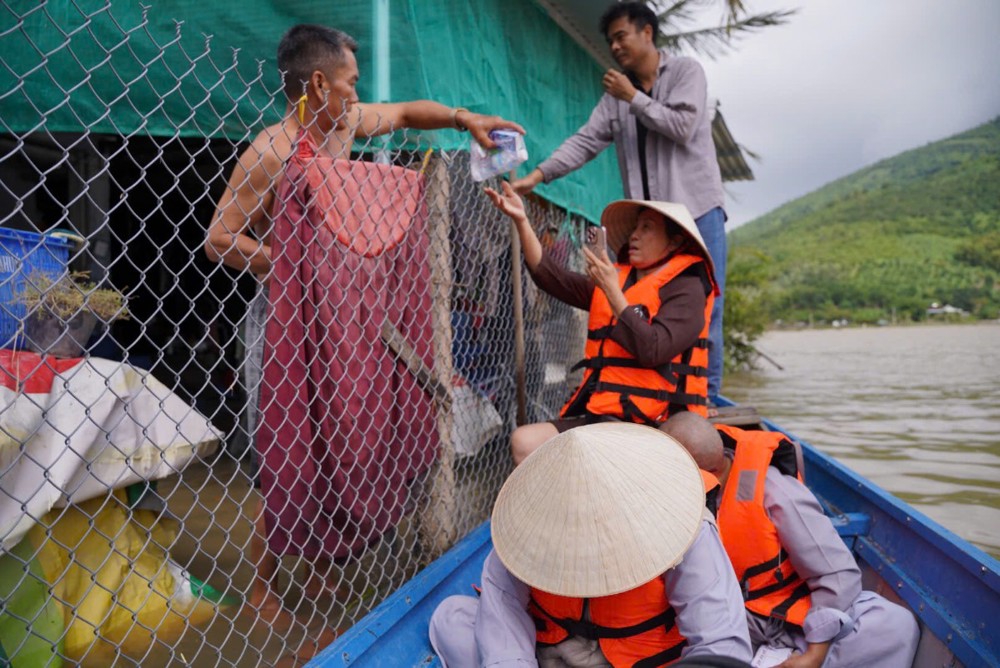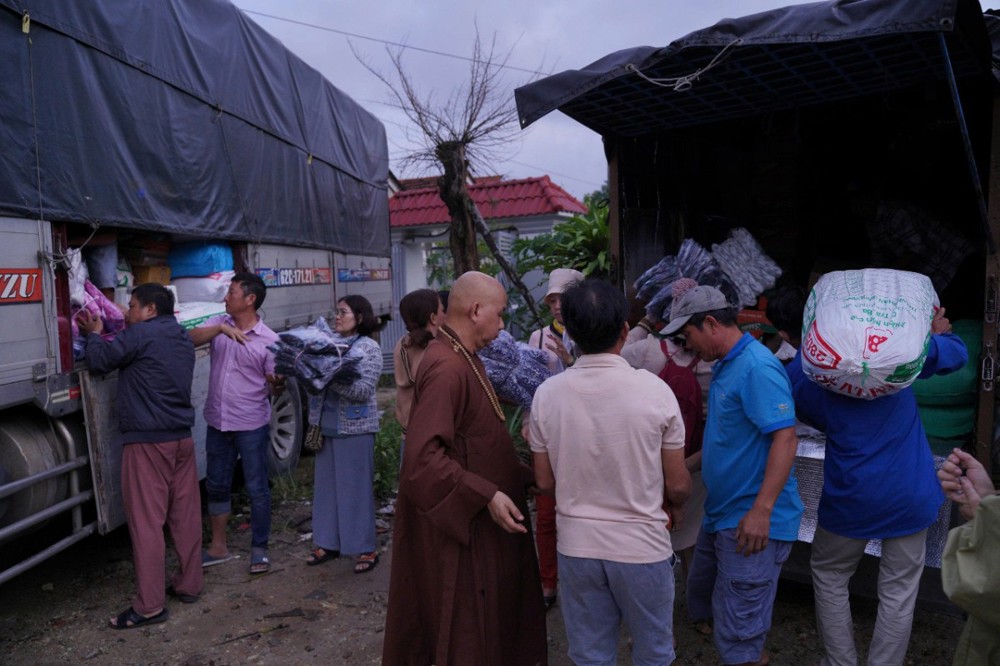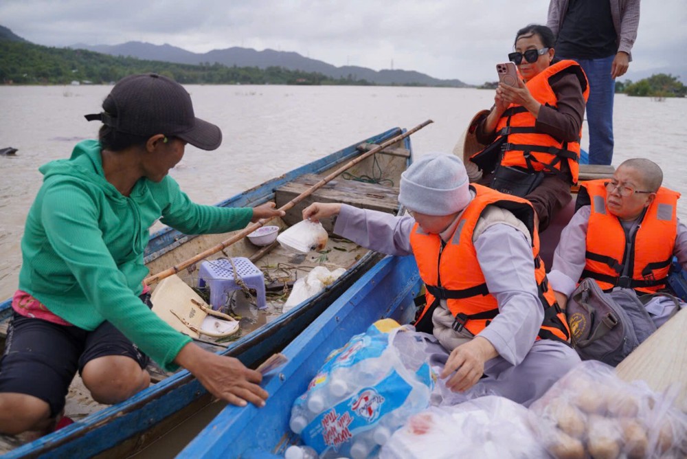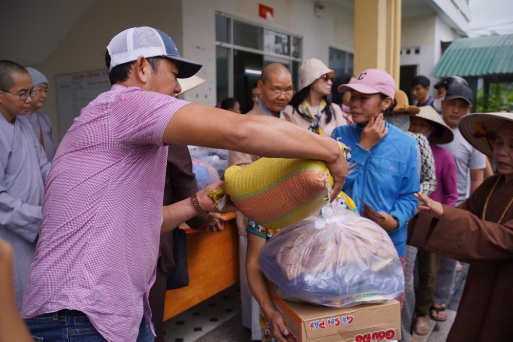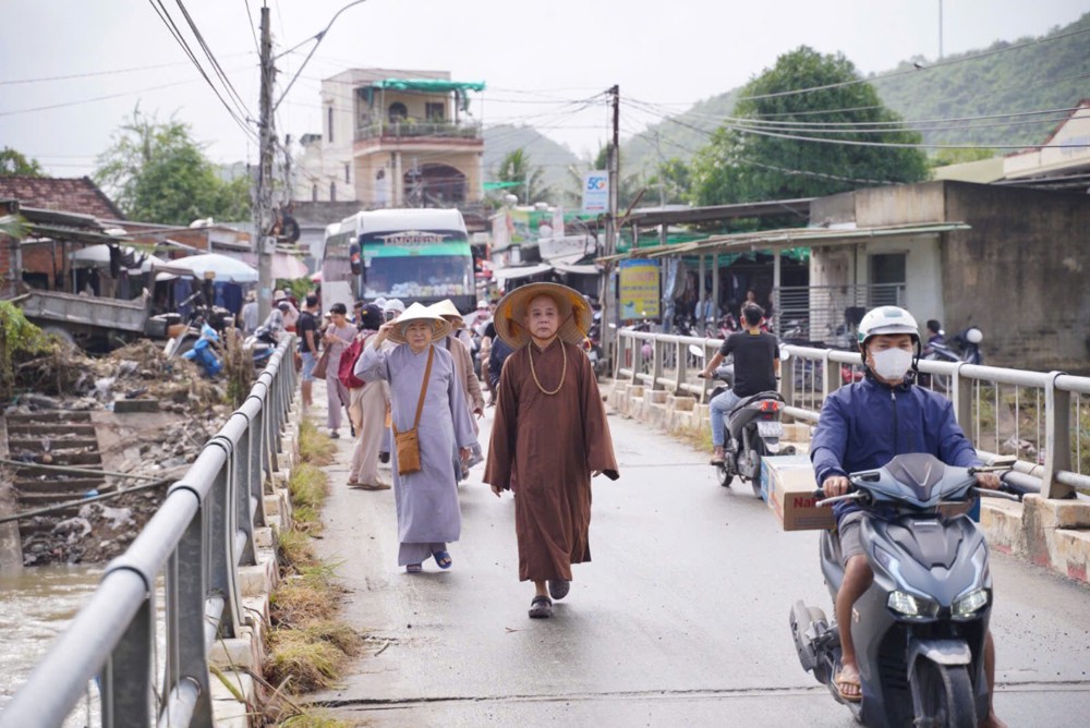 Đoàn đã dừng chân tại phường Hòa Thắng (tỉnh Khánh Hòa) để trao tặng 100 phần quà đến các hộ gia đình chịu nhiều thiệt hại sau thiên tai. Ngay sau đó, Đoàn tiếp tục vượt gần 100km đến chùa Minh Sơn, thuộc phường Phú Hòa (tỉnh Phú Yên), mang theo thêm 100 phần quà gửi tặng bà con nơi đây.