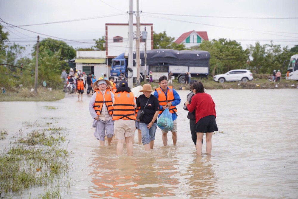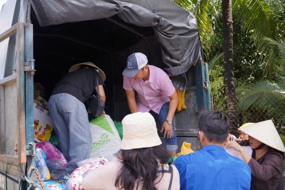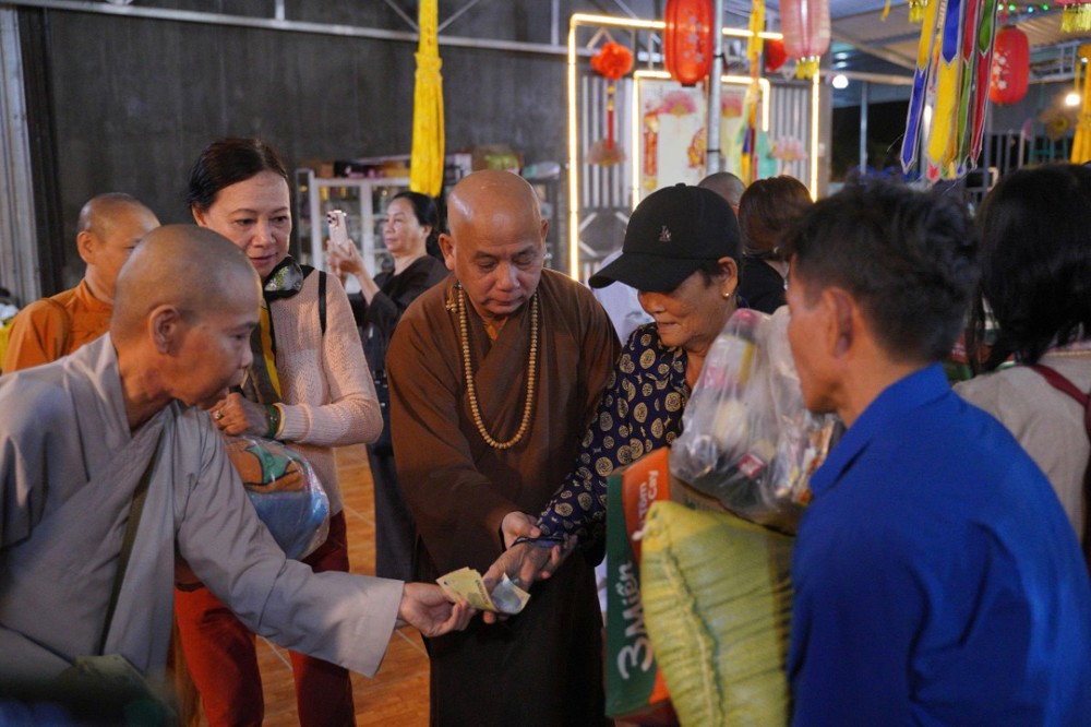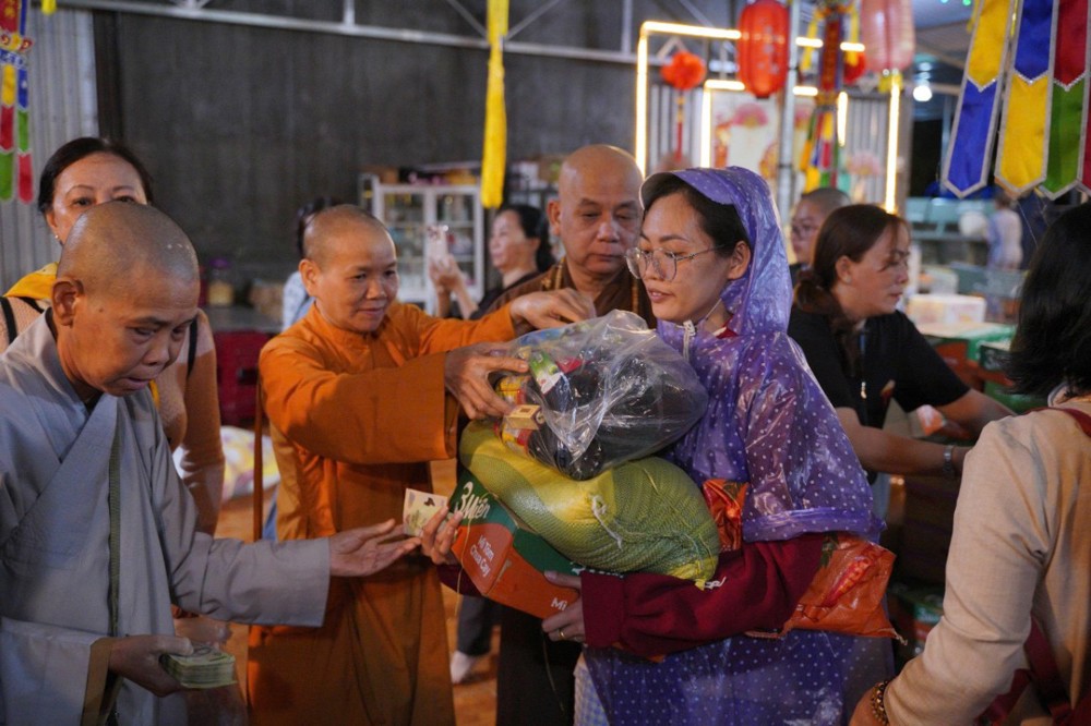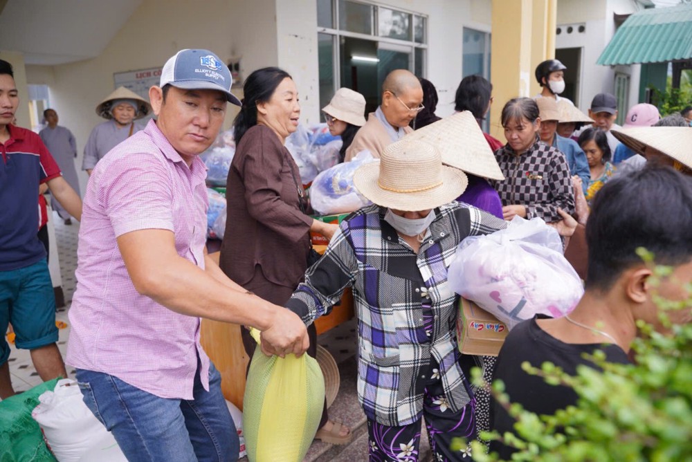 Đoàn đã dừng chân tại phường Hòa Thắng (tỉnh Khánh Hòa) để trao tặng 100 phần quà đến các hộ gia đình chịu nhiều thiệt hại sau thiên tai. Ngay sau đó, Đoàn tiếp tục vượt gần 100km đến chùa Minh Sơn, thuộc phường Phú Hòa (tỉnh Phú Yên), mang theo thêm 100 phần quà gửi tặng bà con nơi đây.