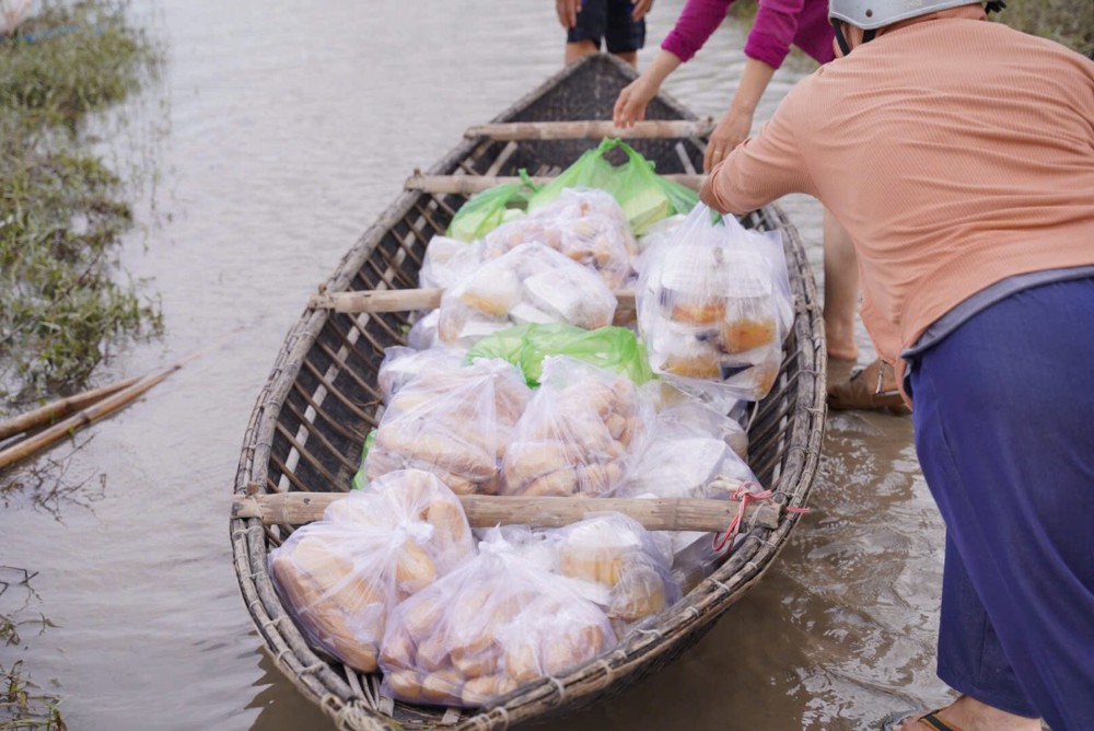 Bên cạnh đó, đoàn cũng đến thăm các hộ dân bị cô lập do mưa lũ, trao những phần cơm nóng để bà con cầm cự qua ngày, kịp thời hỗ trợ trong lúc khó khăn nhất. Những phần cơm tuy giản dị nhưng mang theo sự sẻ chia, giúp bà con vơi bớt lo toan và cảm nhận được sự đồng hành của cộng đồng trong thời điểm khắc nghiệt này.