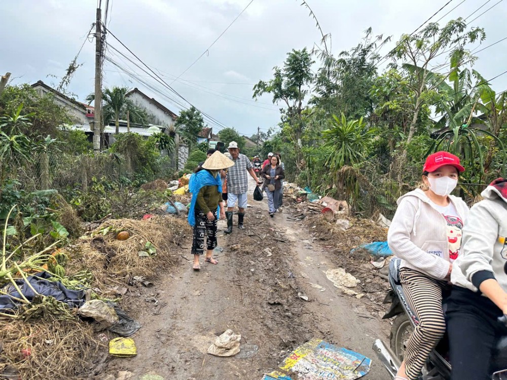 Tiếp đó đoàn đến từng xóm ngập sâu thăm hỏi động viên và trao tặng 250 hộ gia đình, mỗi hộ 500.000đ.